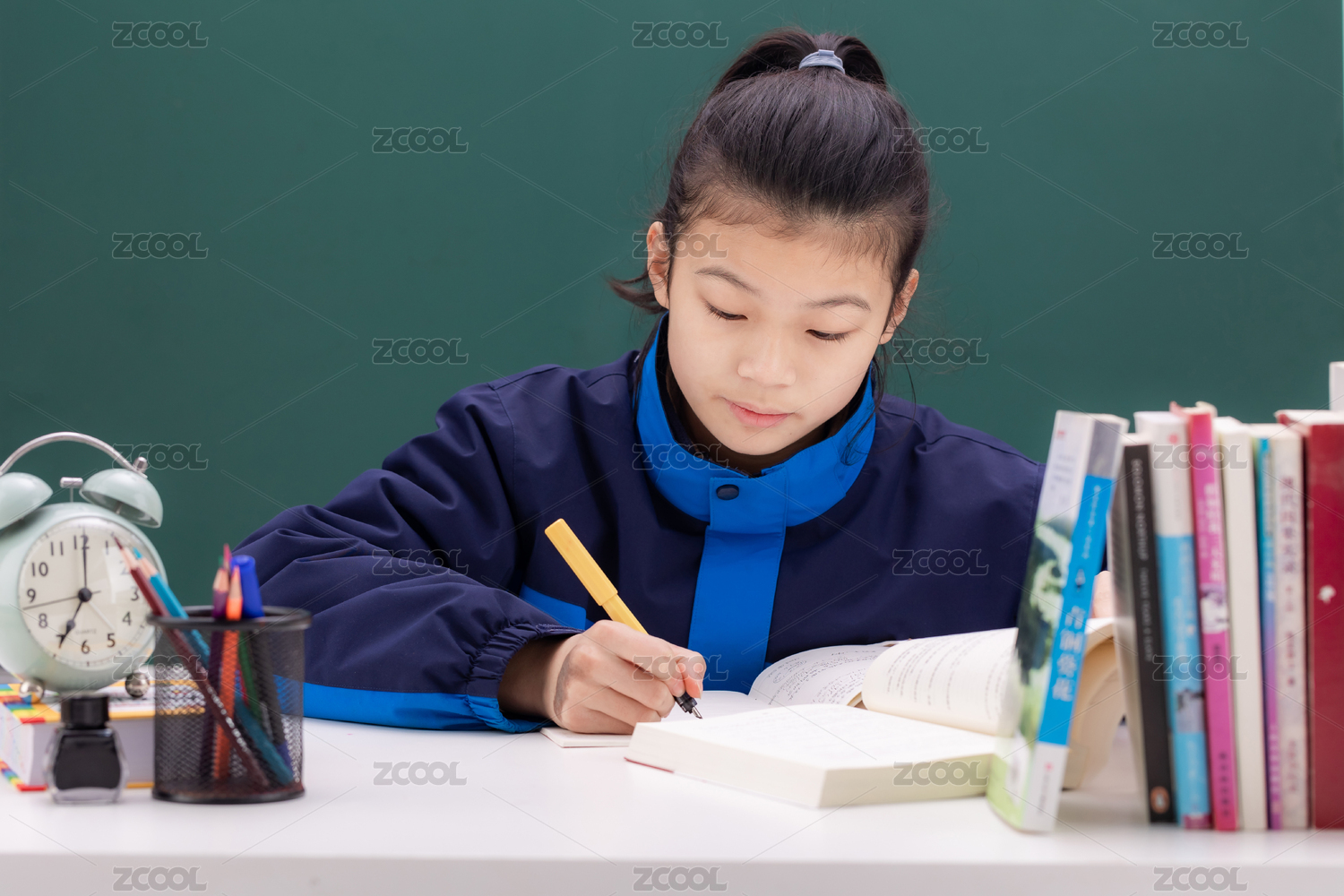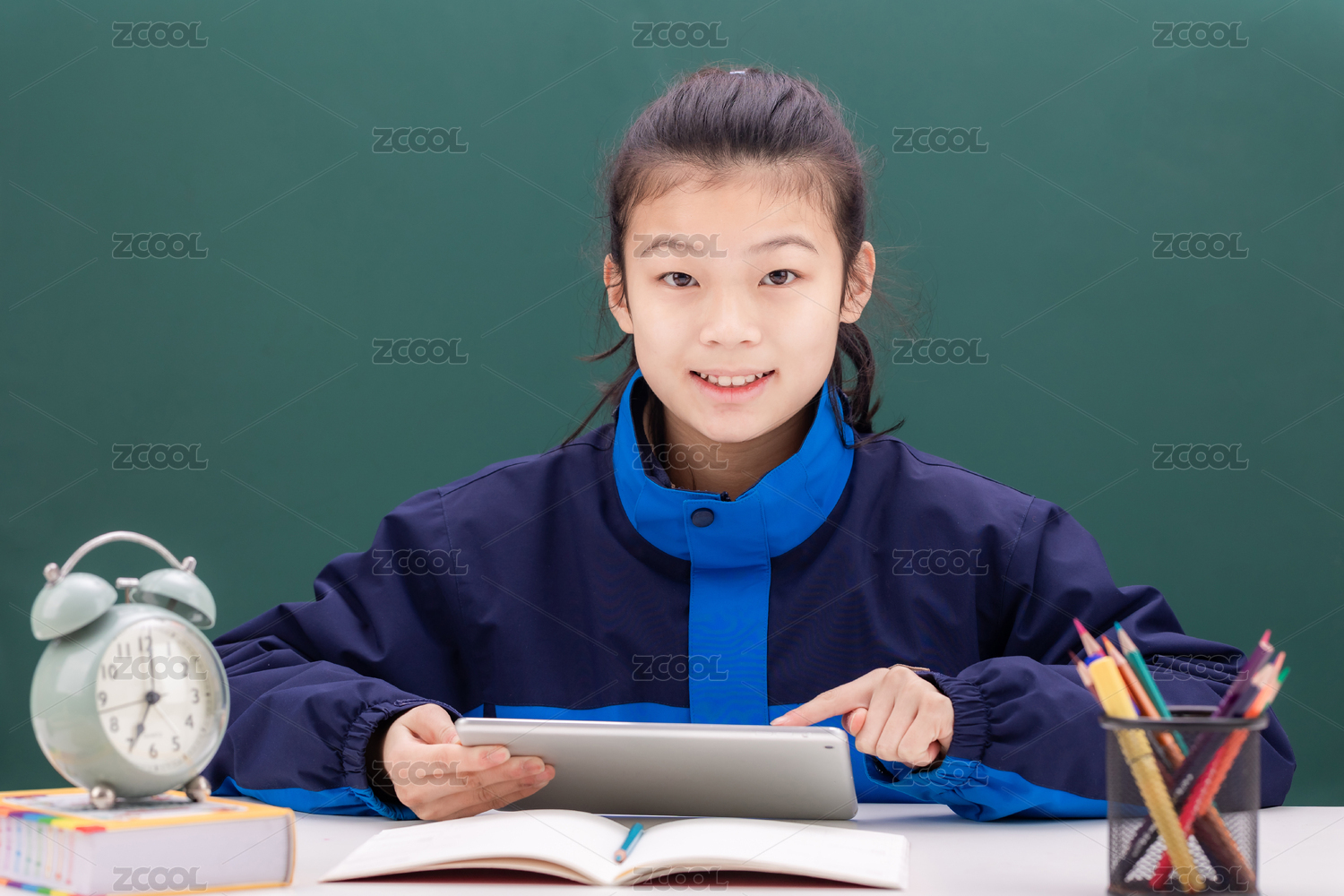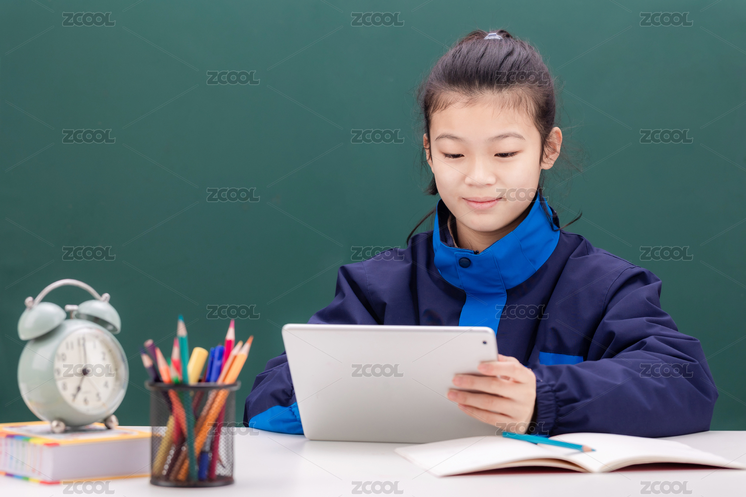 亞洲女孩在學(xué)校教室接受在線(xiàn)遠(yuǎn)程教育
