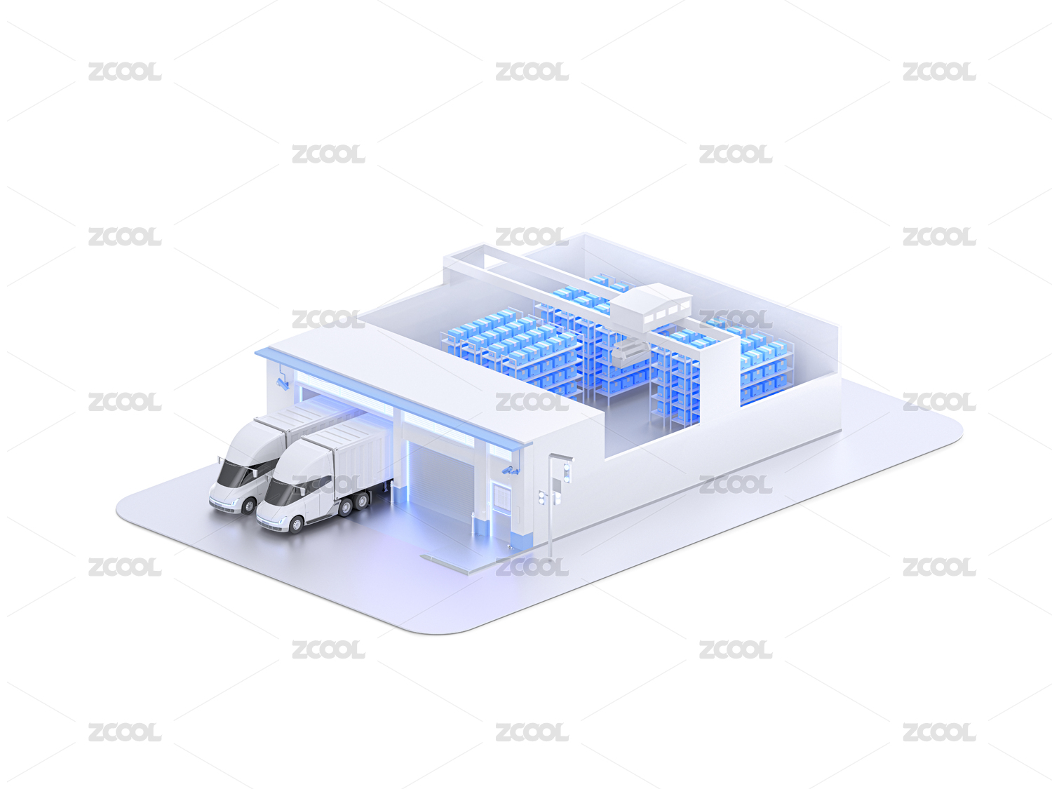 淺色智能倉庫倉儲數(shù)字供應(yīng)鏈元素3D圖標(biāo)