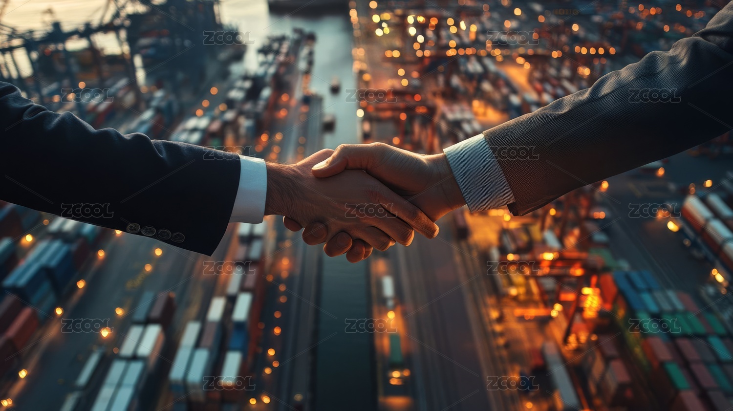 交通運輸智能物流中心,商務(wù)合作伙伴握手圖