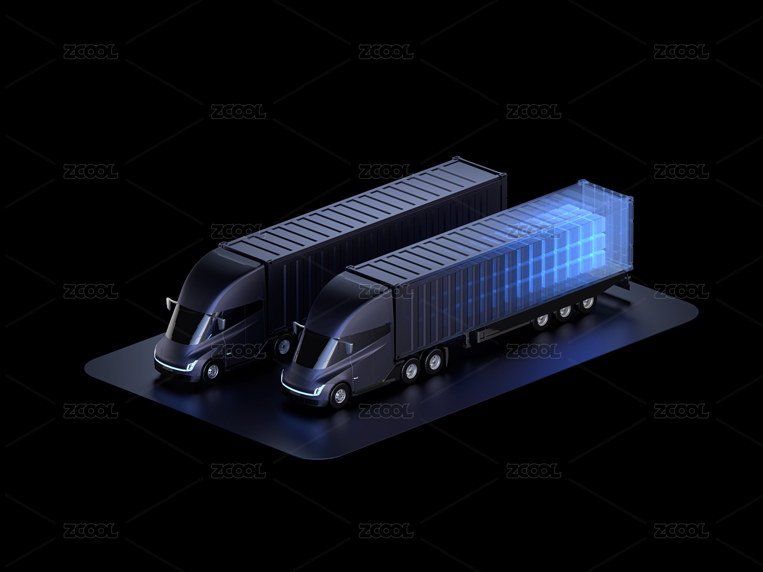 深色智能物流貨車數(shù)字供應(yīng)鏈元素3D圖標(biāo)