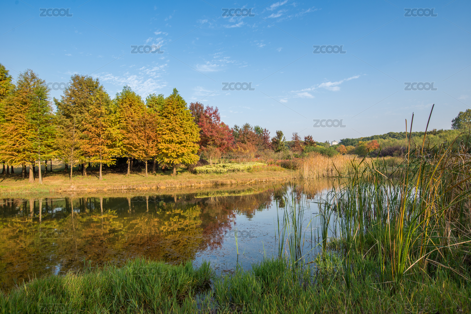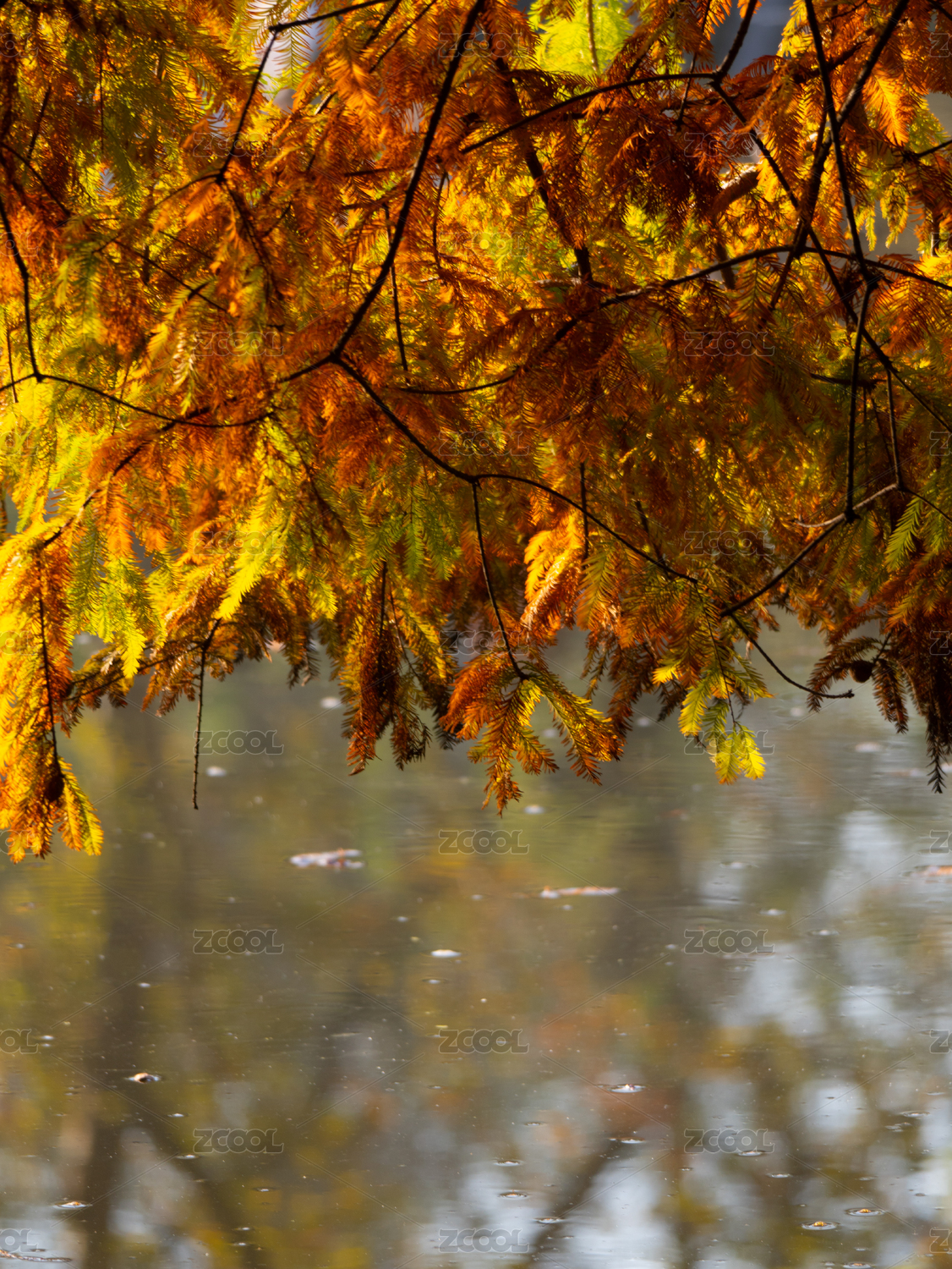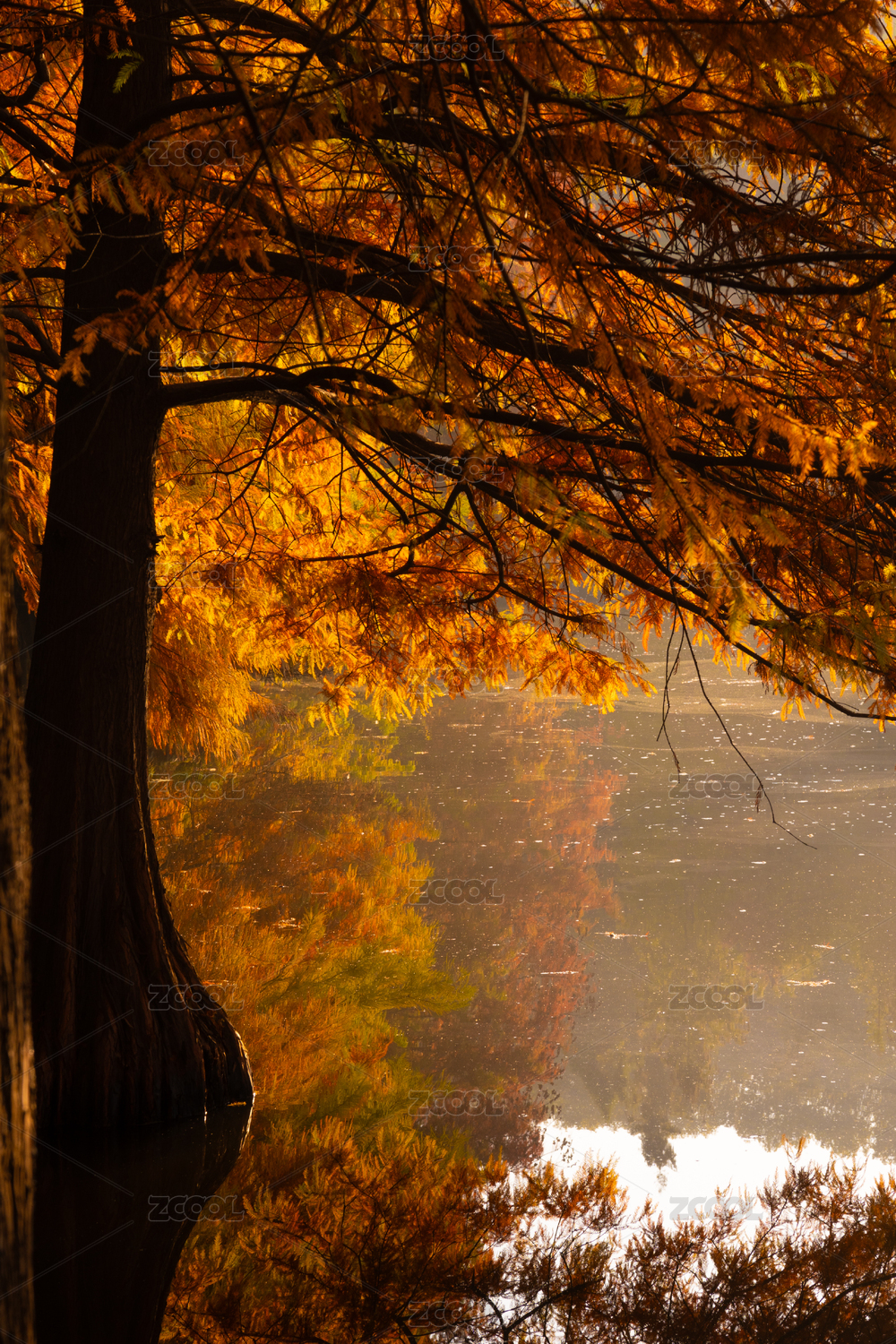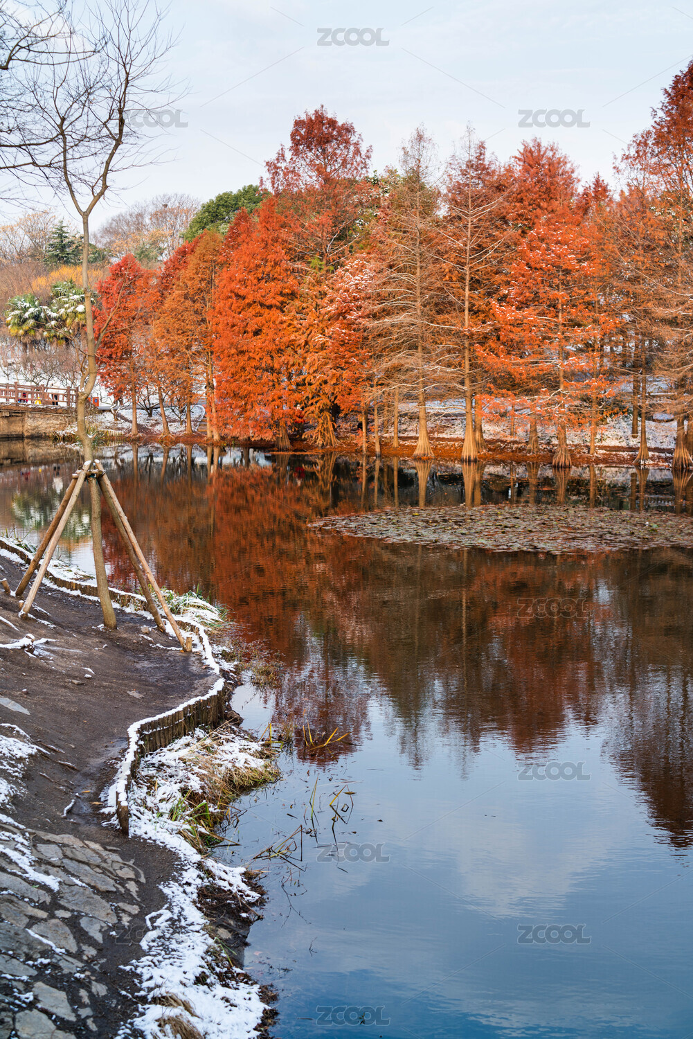南京燕雀湖秋季紅色的落羽杉和倒影