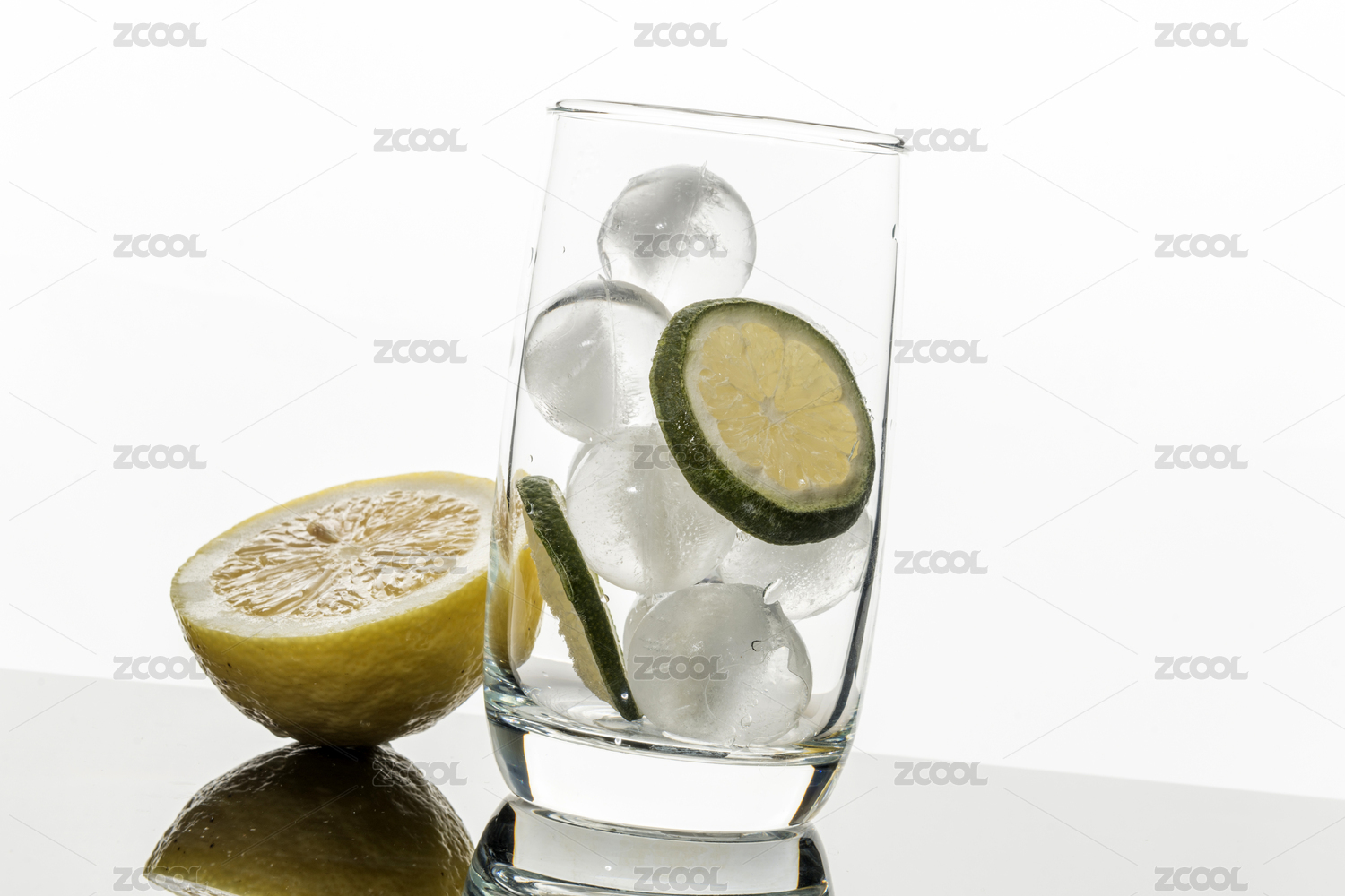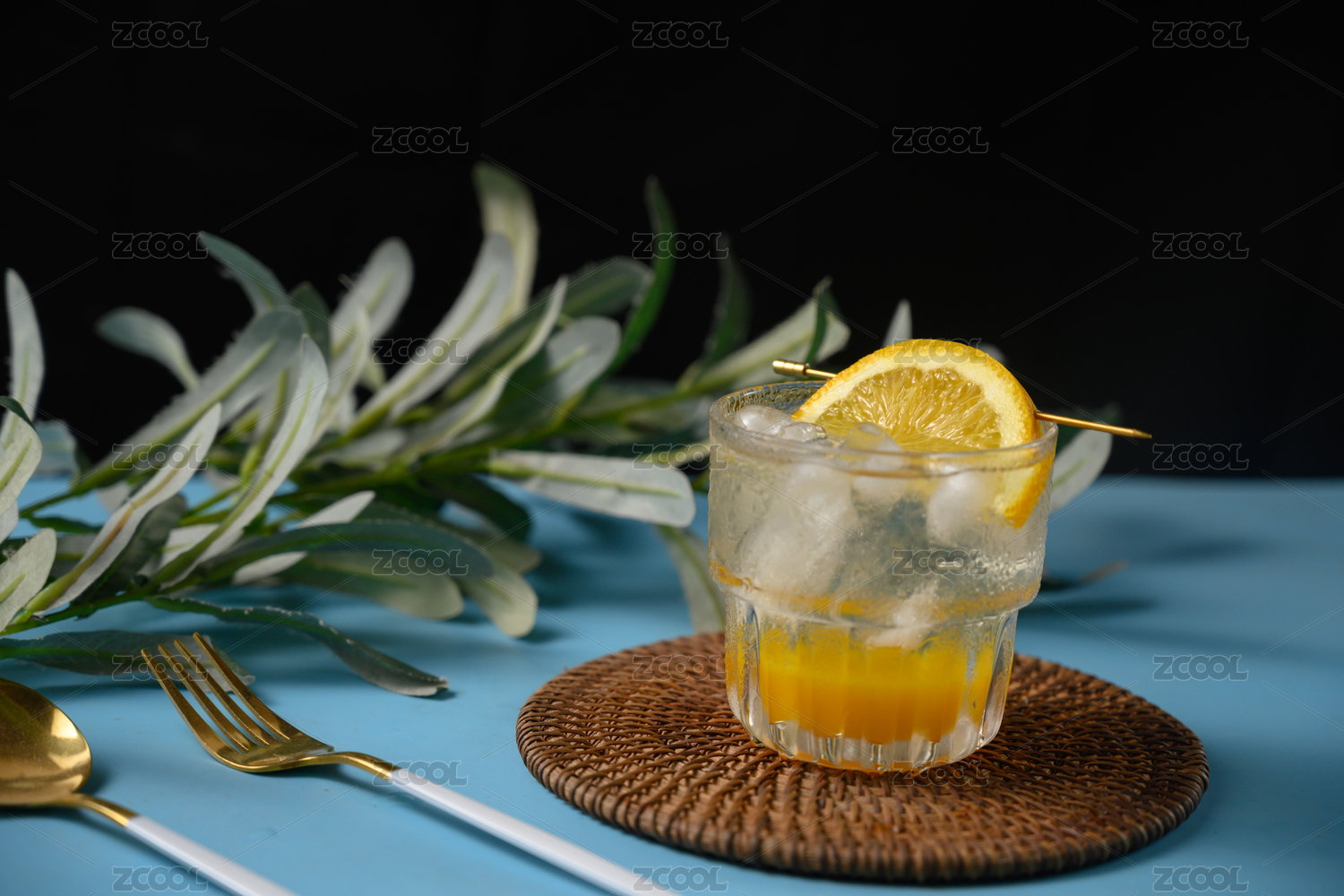 一杯檸檬冰塊蘇打水碳酸飲料特寫