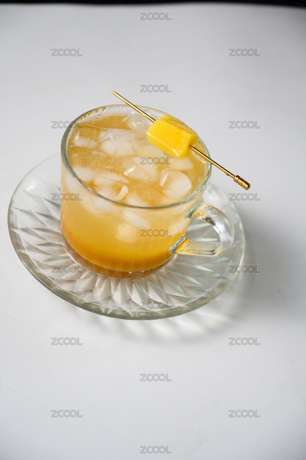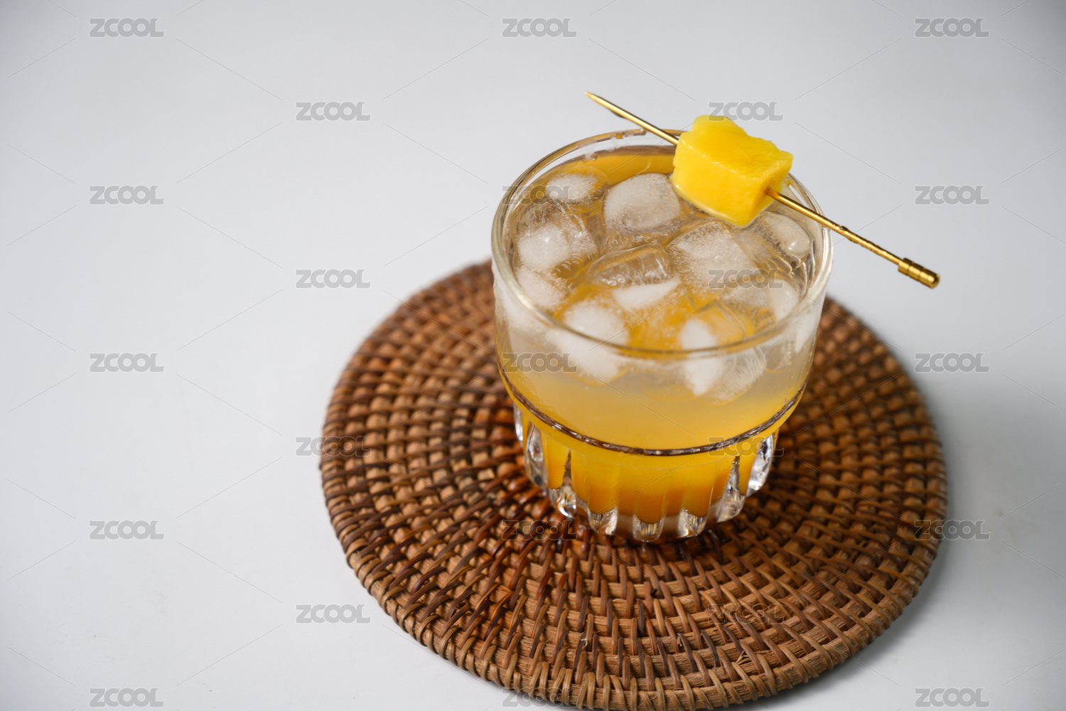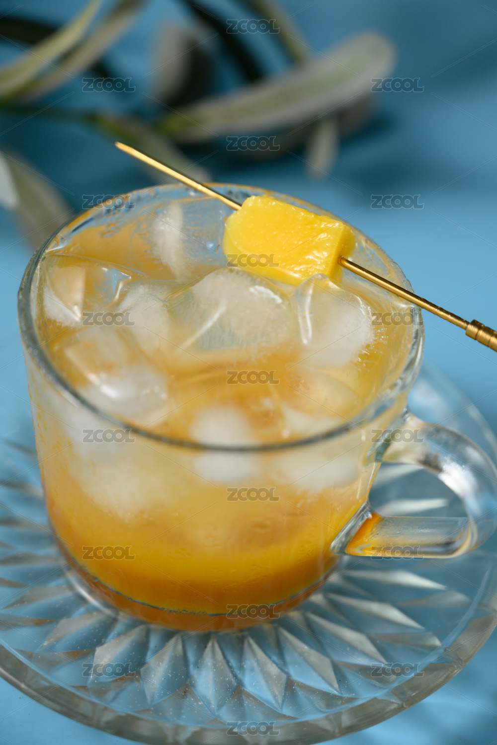 桌面上的杯子里的美味可口的橙汁蘇打水