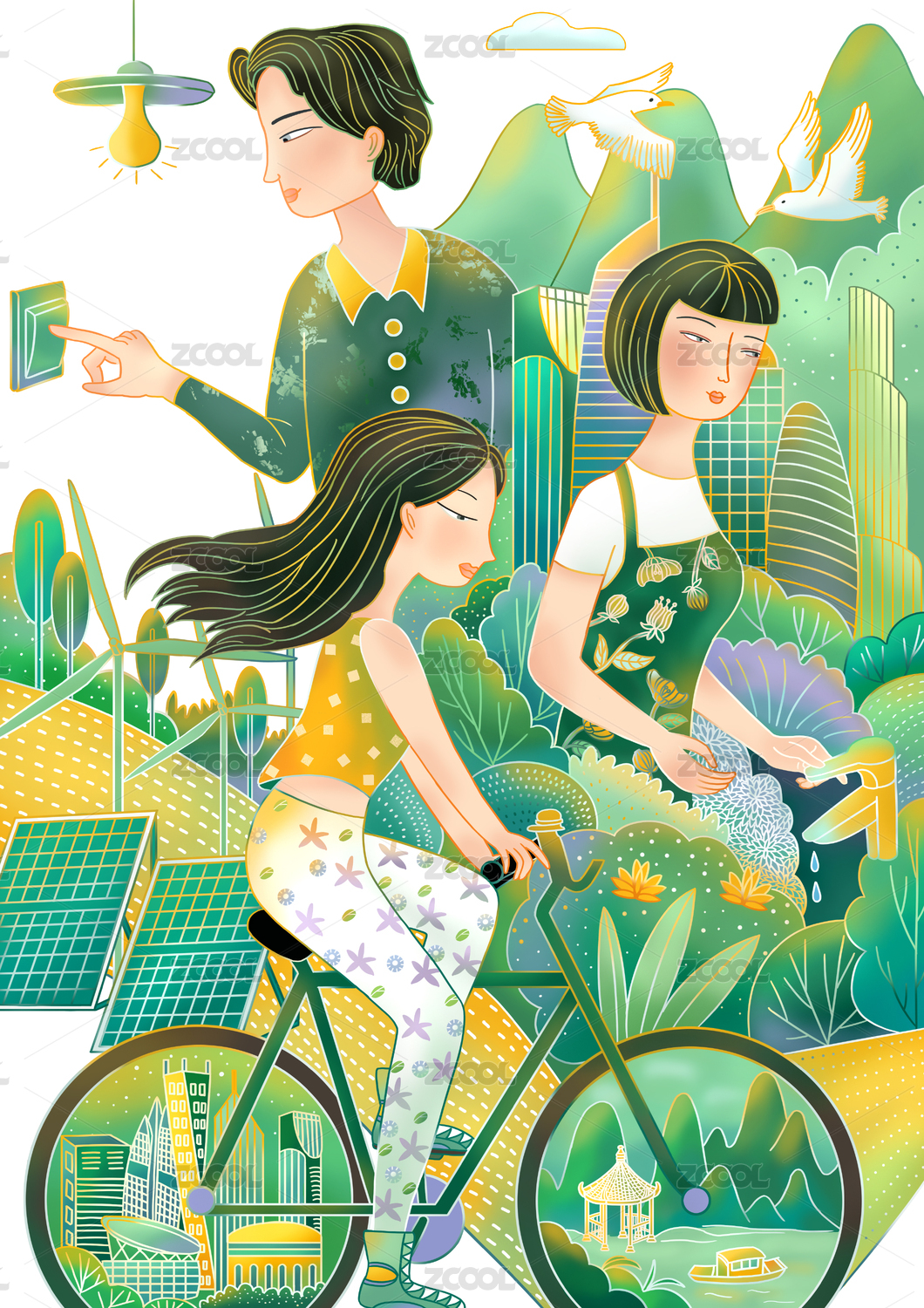節(jié)能減排環(huán)保概念插畫