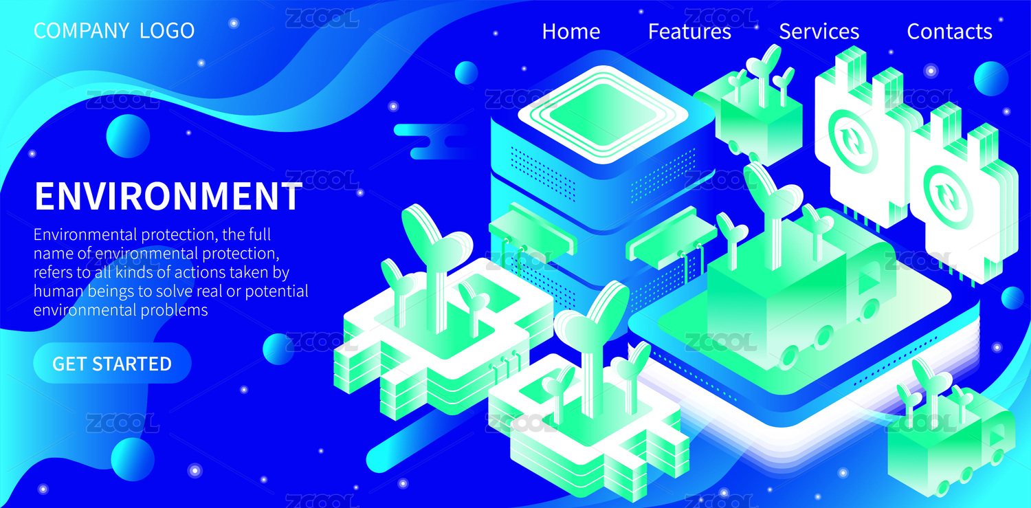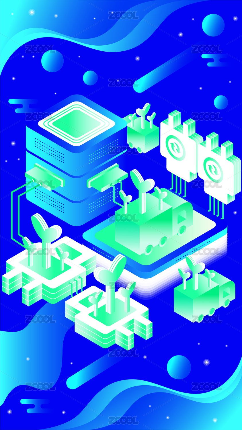 科技未來環(huán)保節(jié)能綠色低碳2.5D矢量插畫