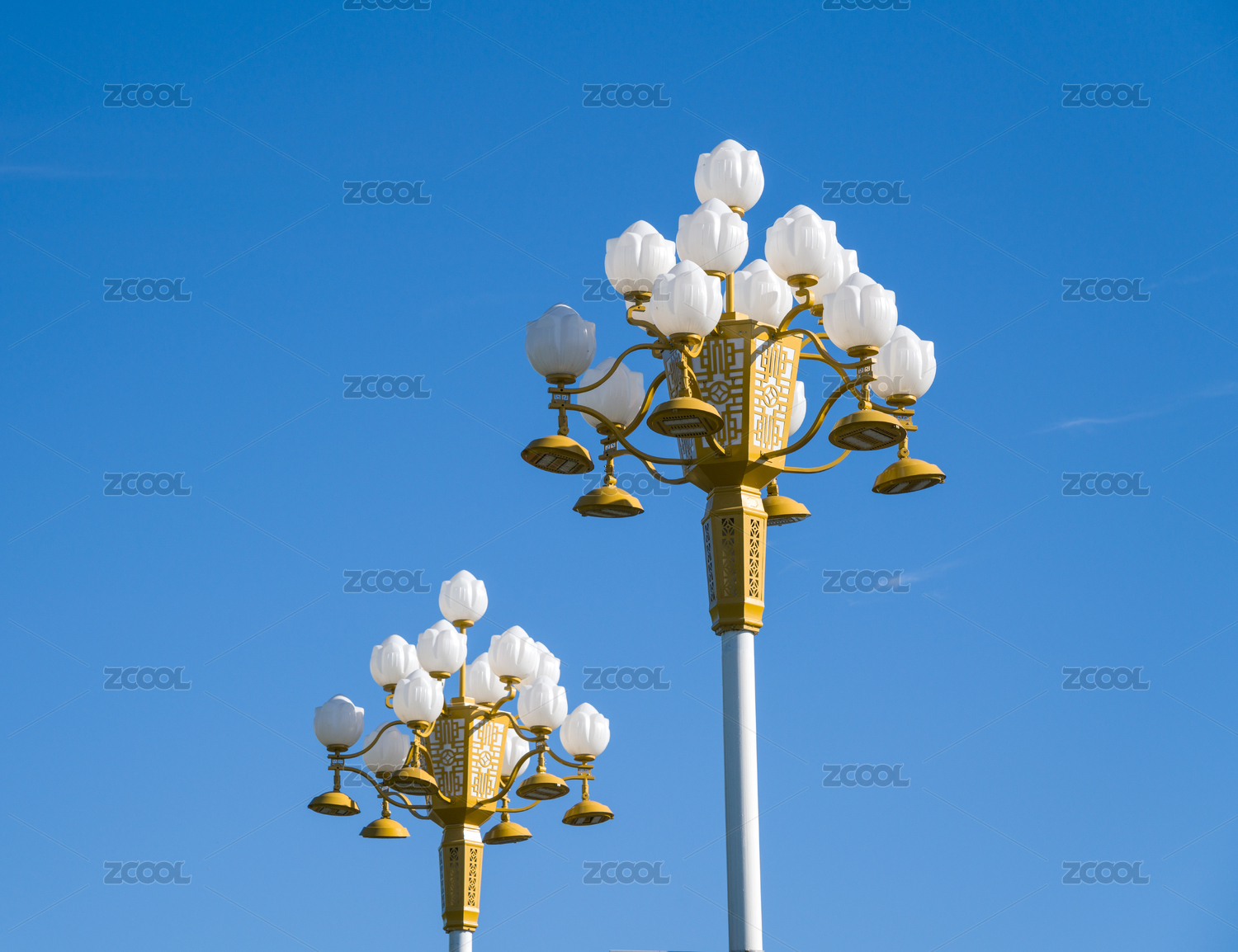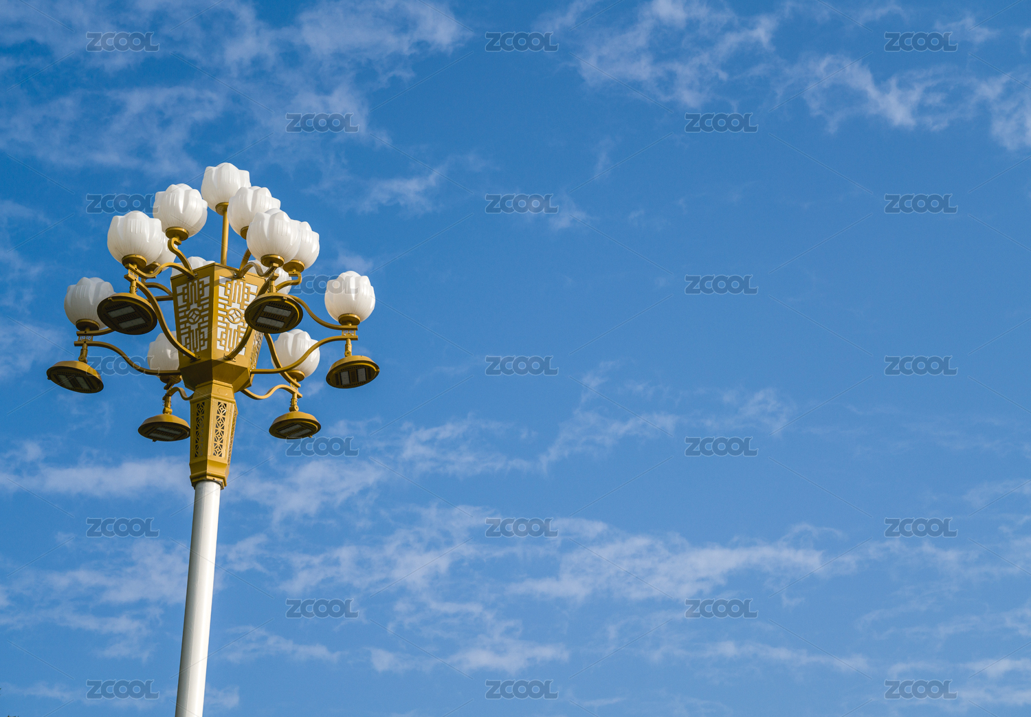 天高云淡的天空下新型節(jié)能蓮花造型路燈