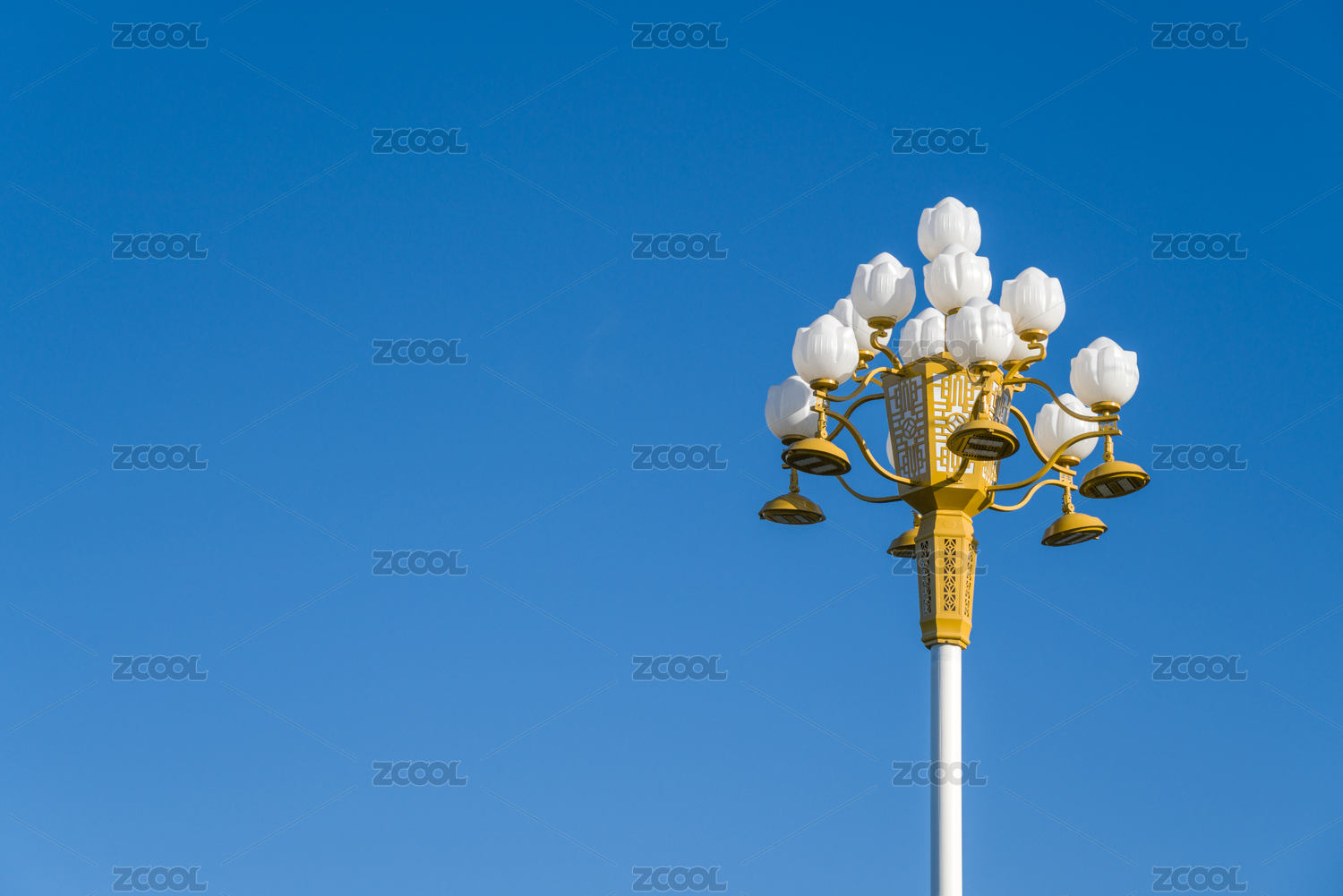 純藍(lán)天空下新型節(jié)能蓮花路燈