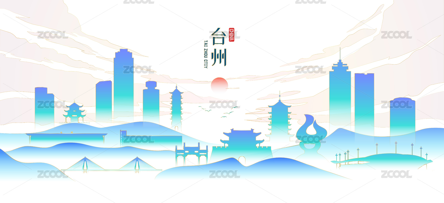 臺(tái)州城市手繪建筑剪影