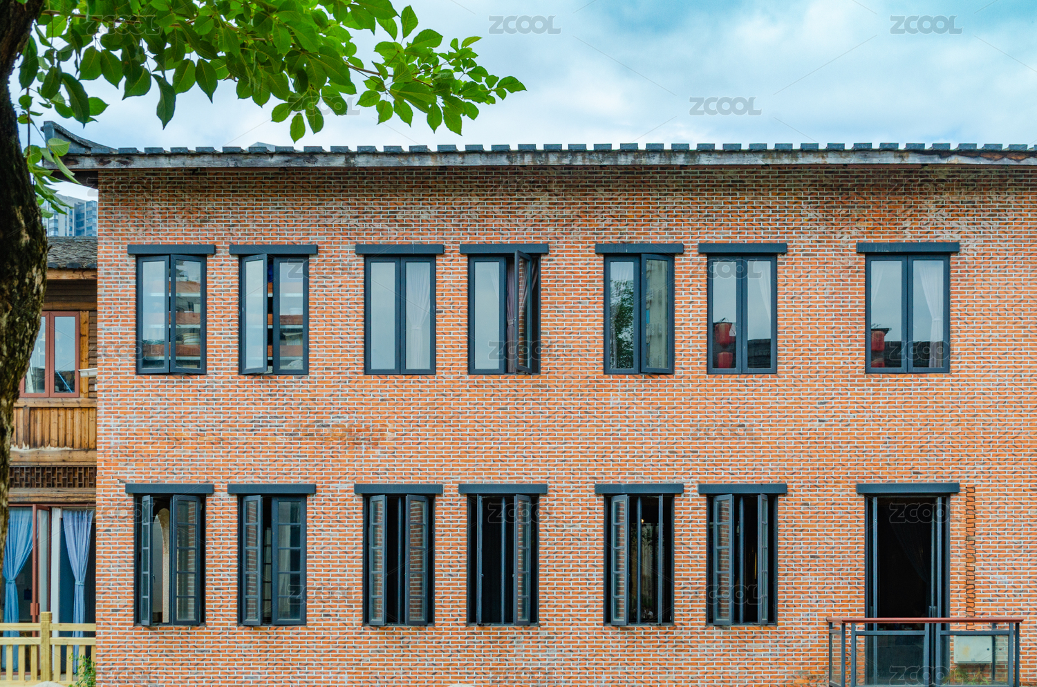 中國鄉(xiāng)村民居的紅磚墻外立面