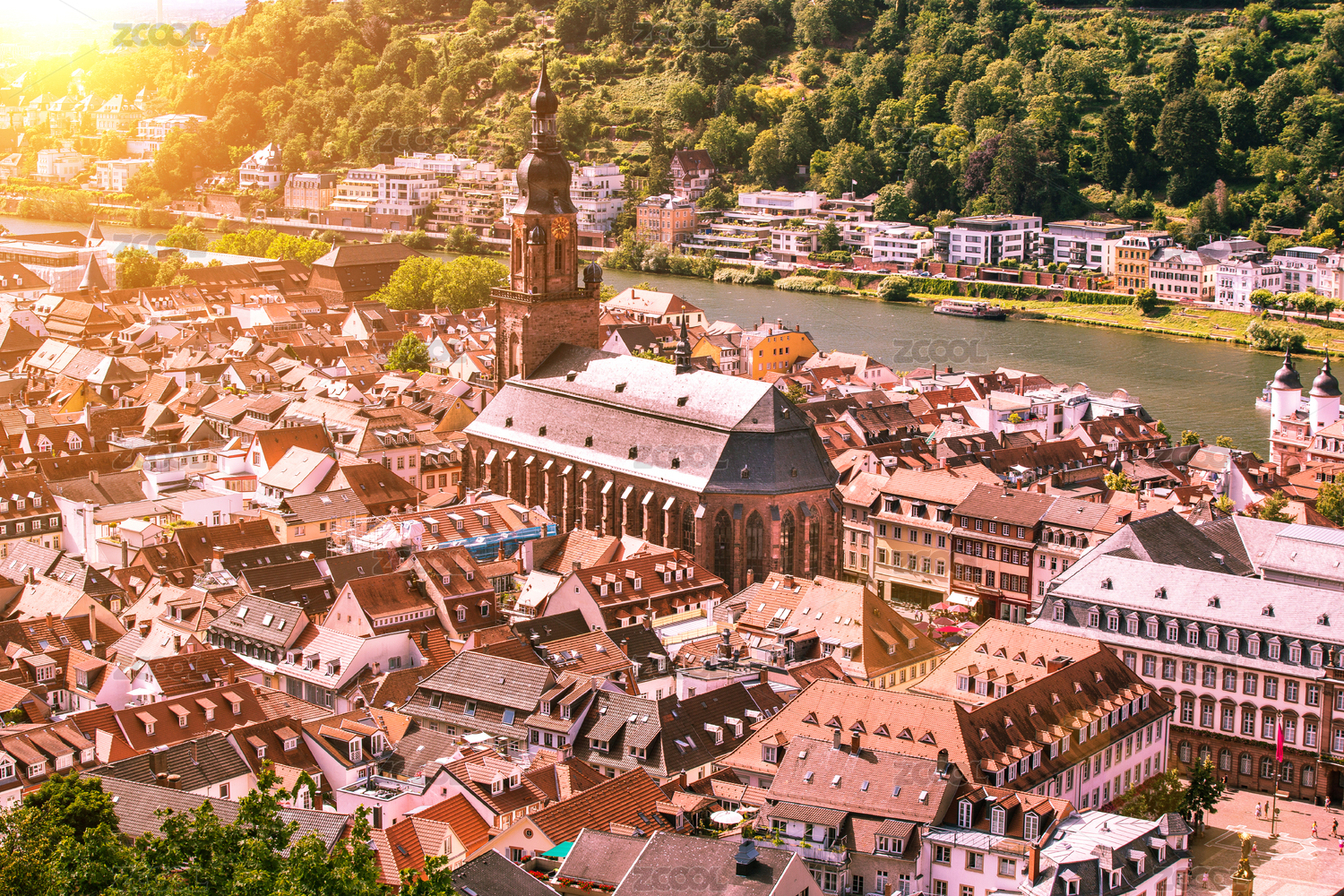 夕陽余暉中的德國海德堡老城區(qū)的古典建筑