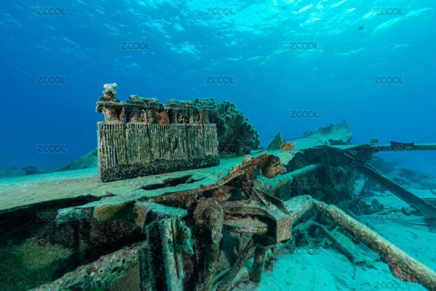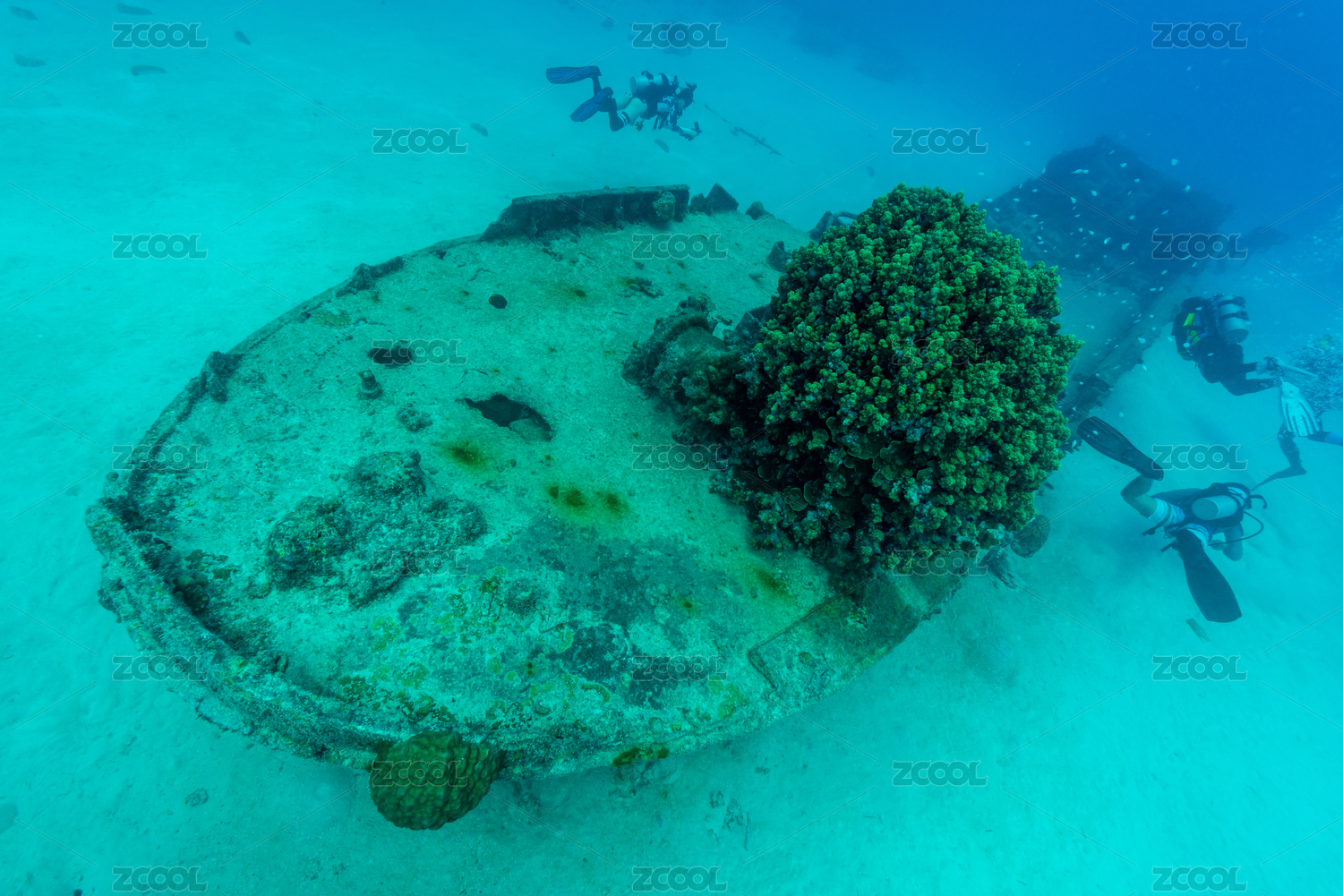 秋季白天美國(guó)塞班島水下二戰(zhàn)沉船