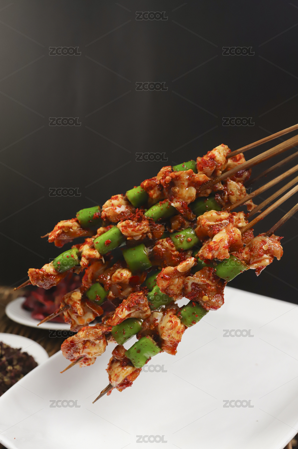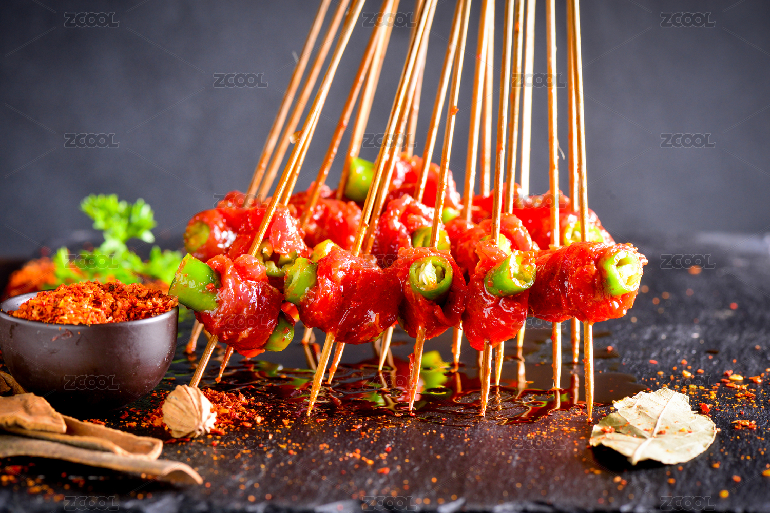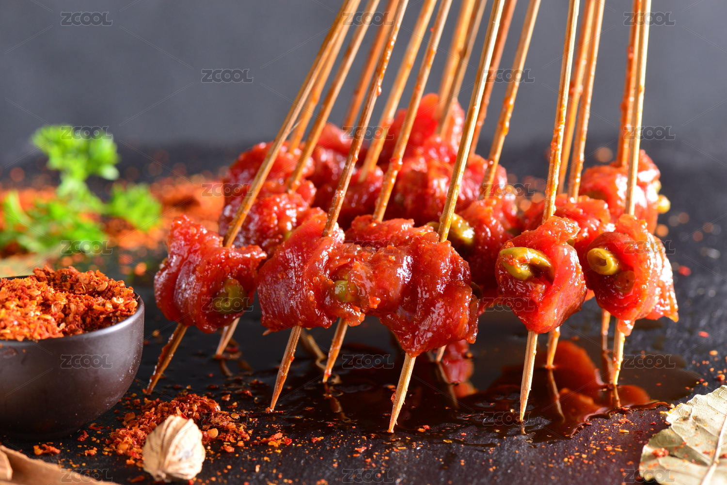 竹簽上穿的中國(guó)四川傳統(tǒng)美食火鍋串串香