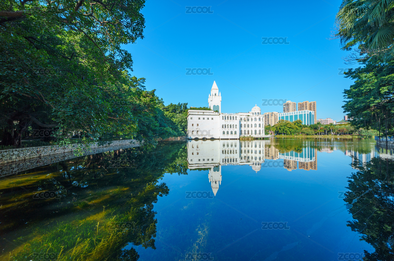 廣州流花湖公園湖畔白色歐式城堡建筑