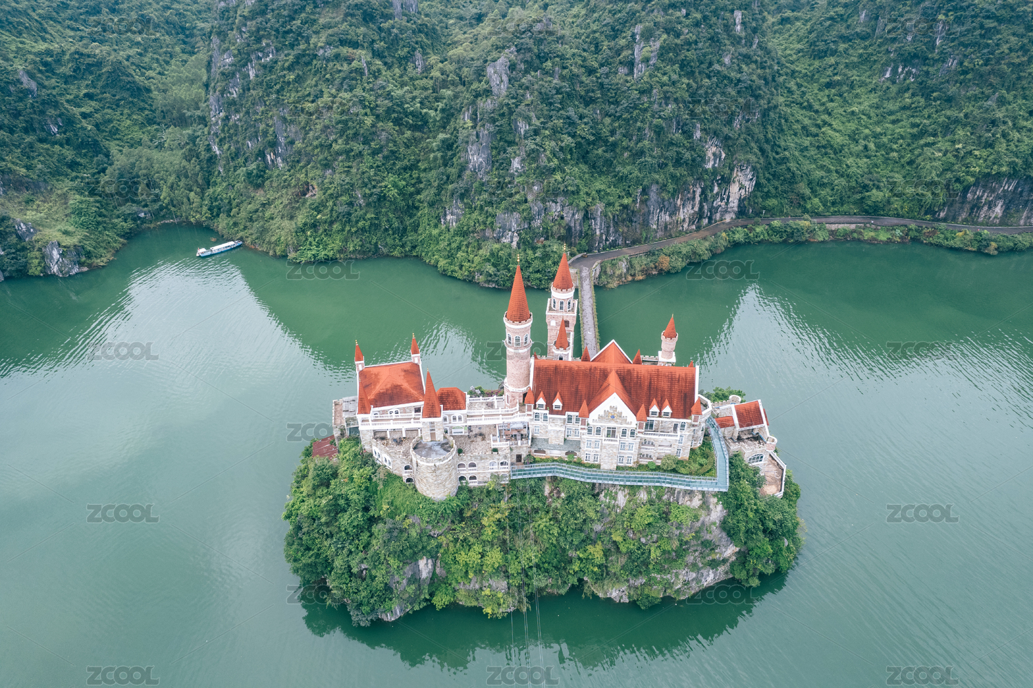 莊園里的歐式尖塔建筑和城堡建筑