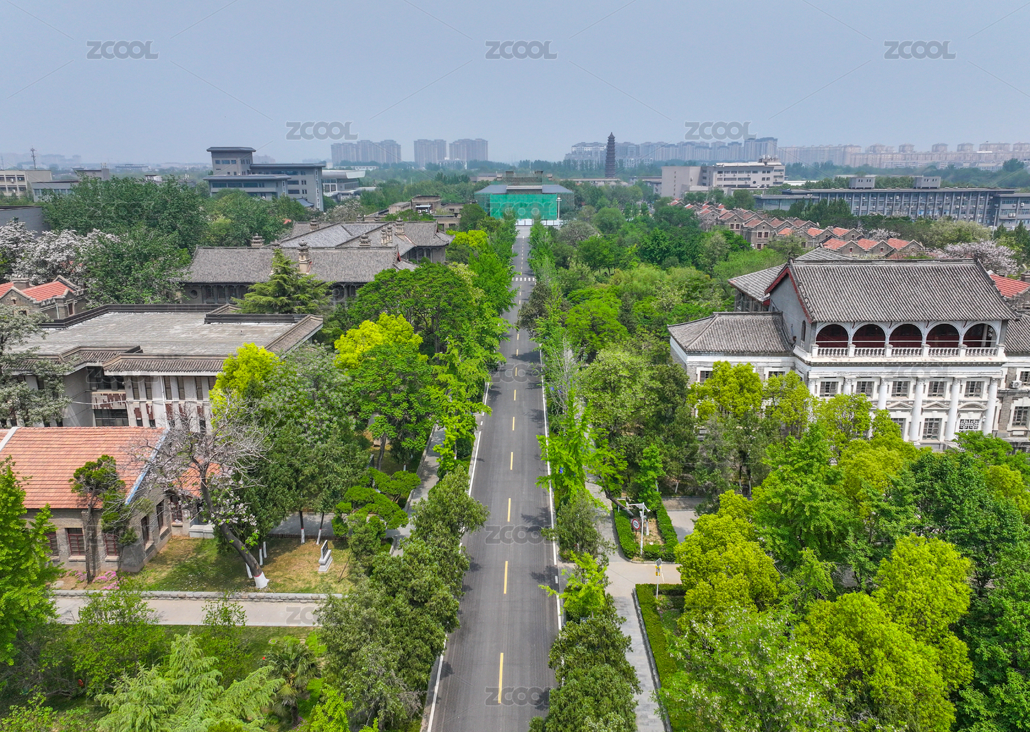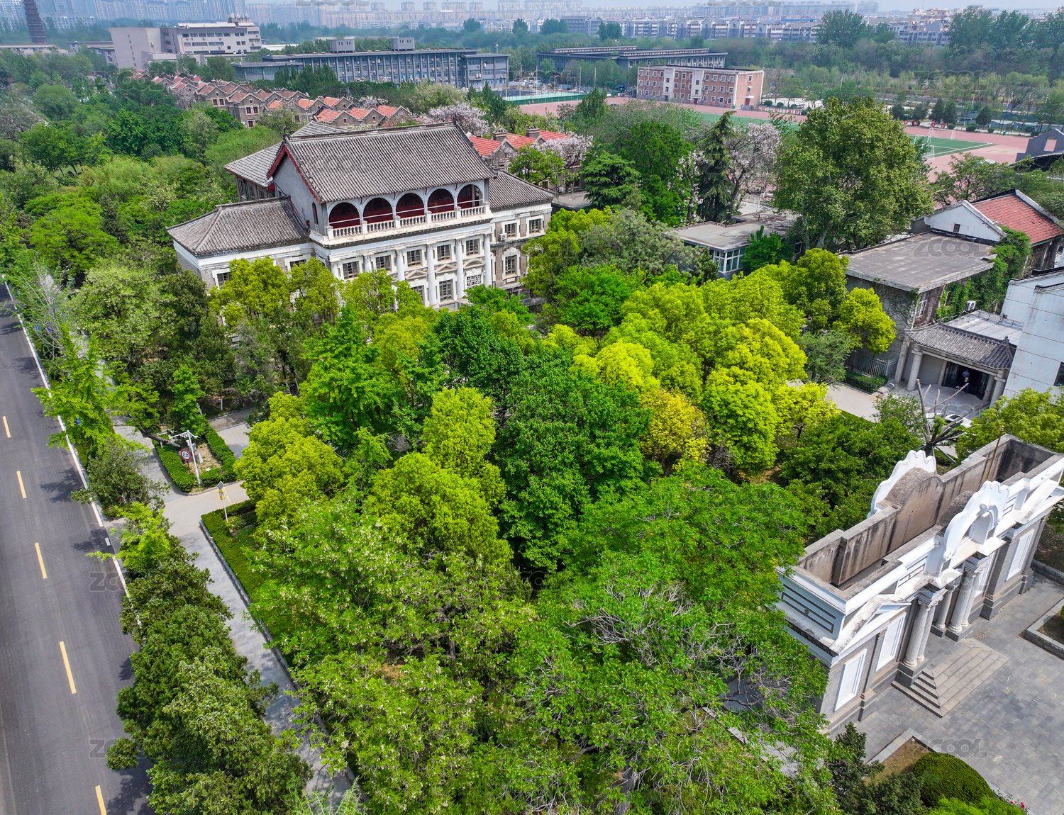 航拍河南大學(xué)開(kāi)封明倫校區(qū)校園內(nèi)近代建筑群