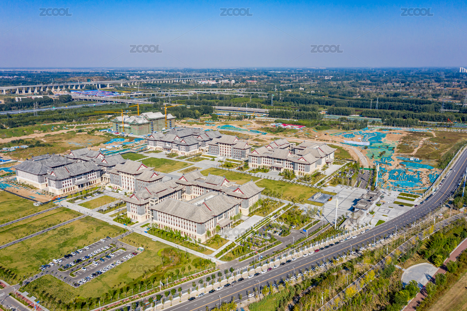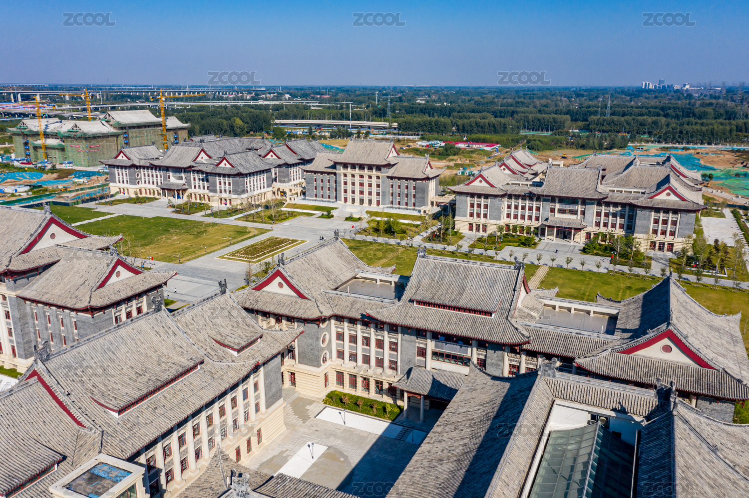 航拍中國(guó)河南大學(xué)鄭州校區(qū)傳統(tǒng)中式建筑風(fēng)格