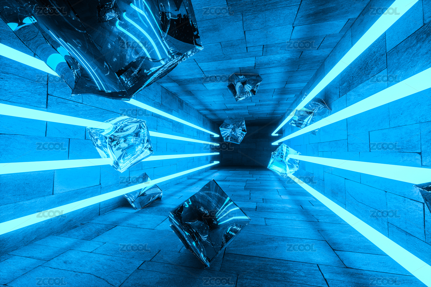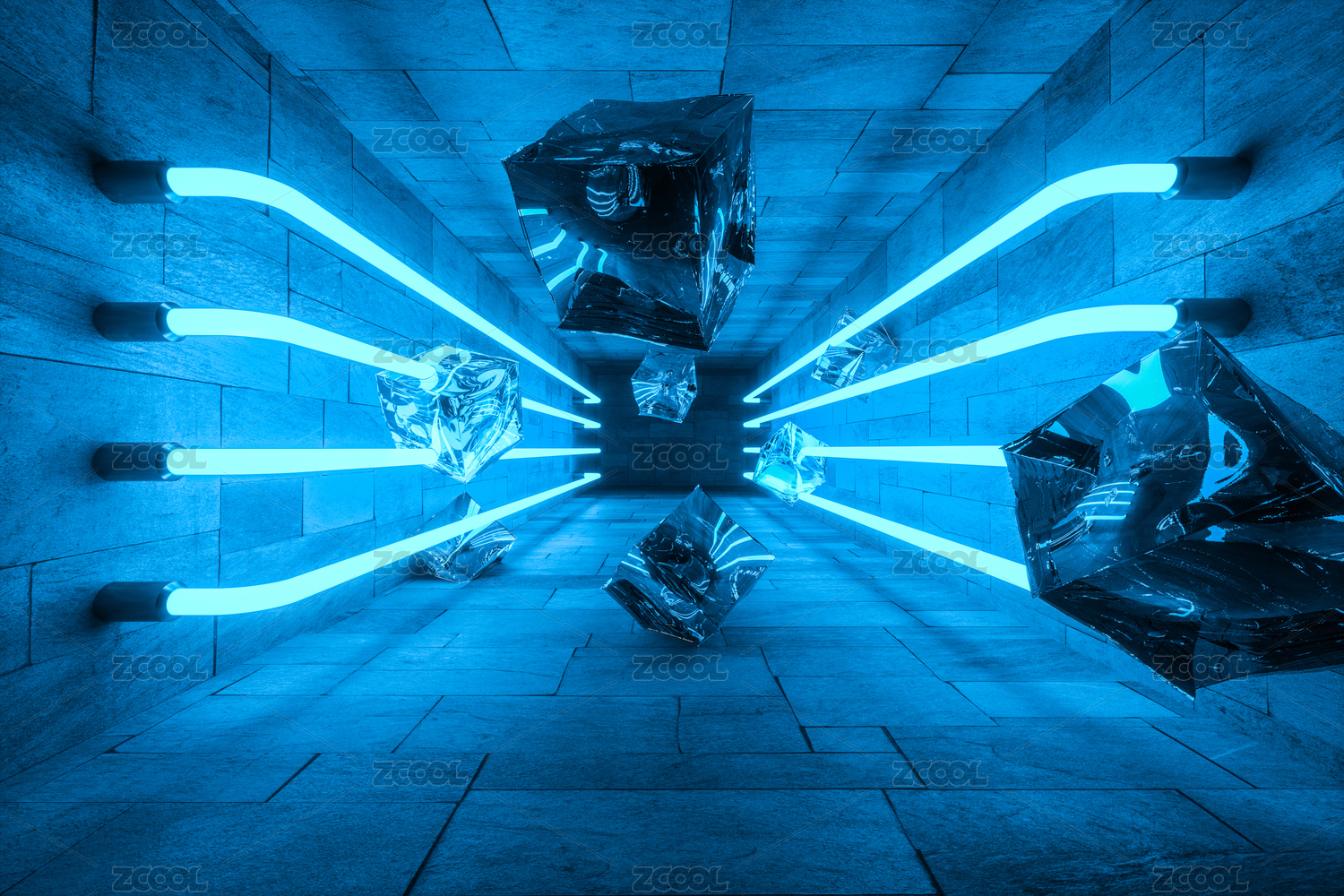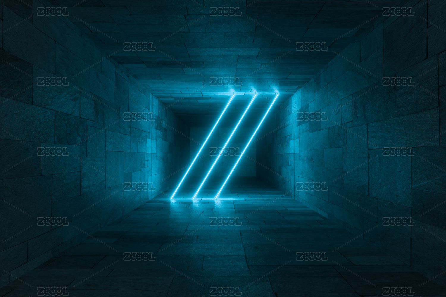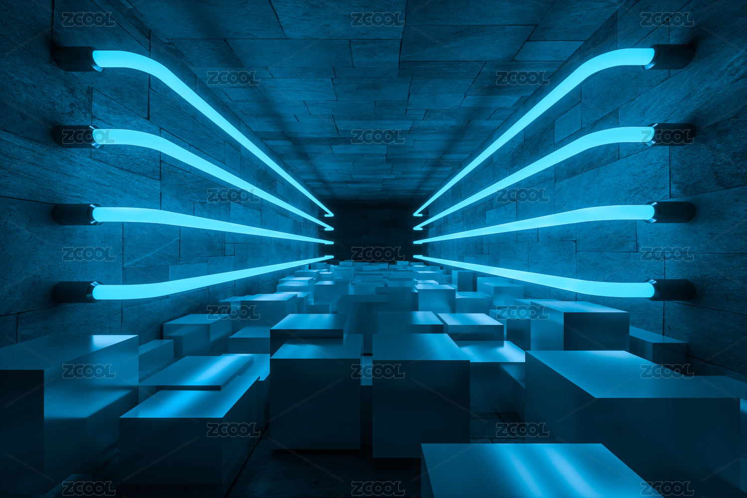 三維渲染,黑暗房間內(nèi)的發(fā)光燈管