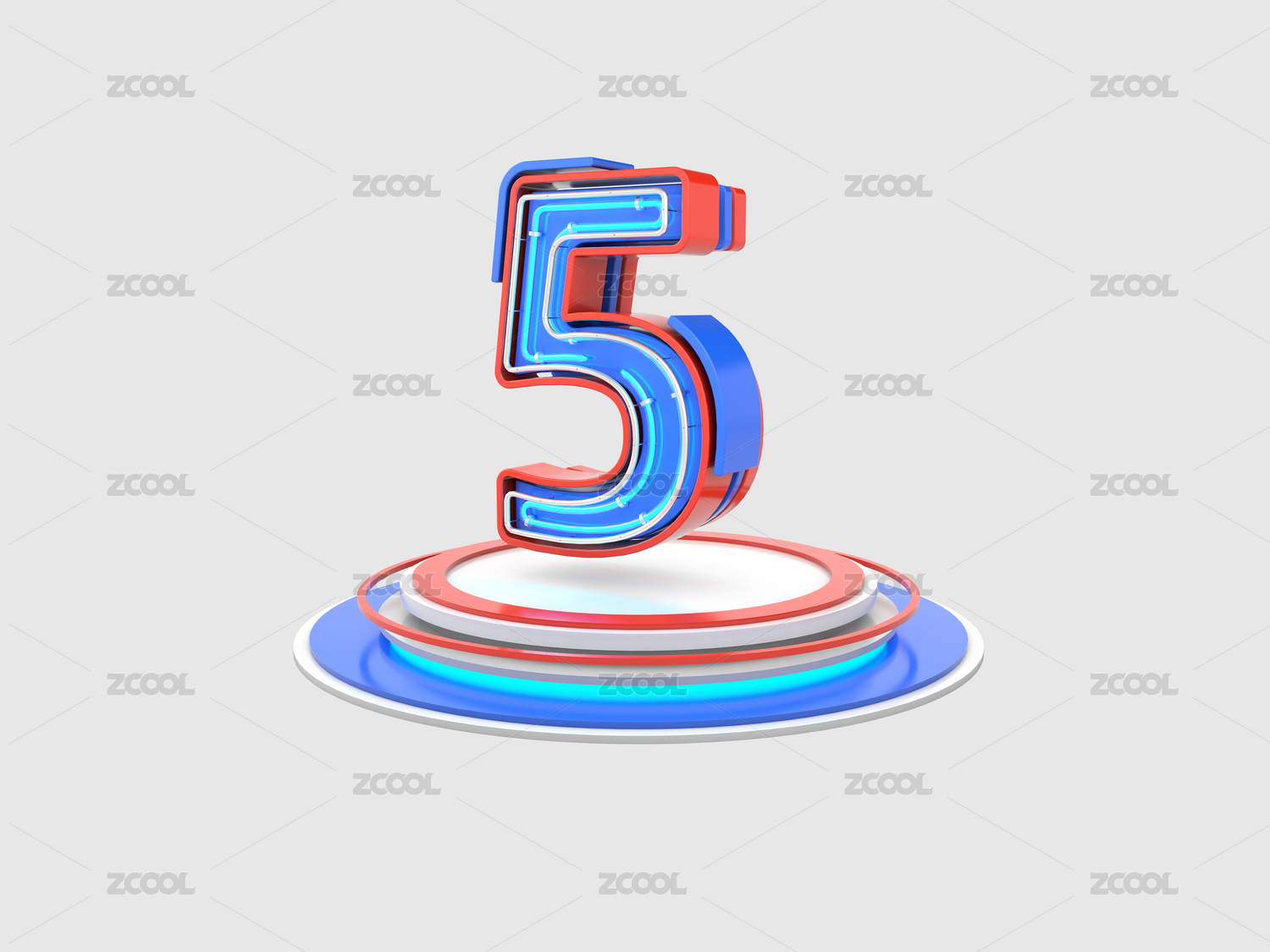 3D立體數(shù)字6紅色金屬質(zhì)感發(fā)光燈帶