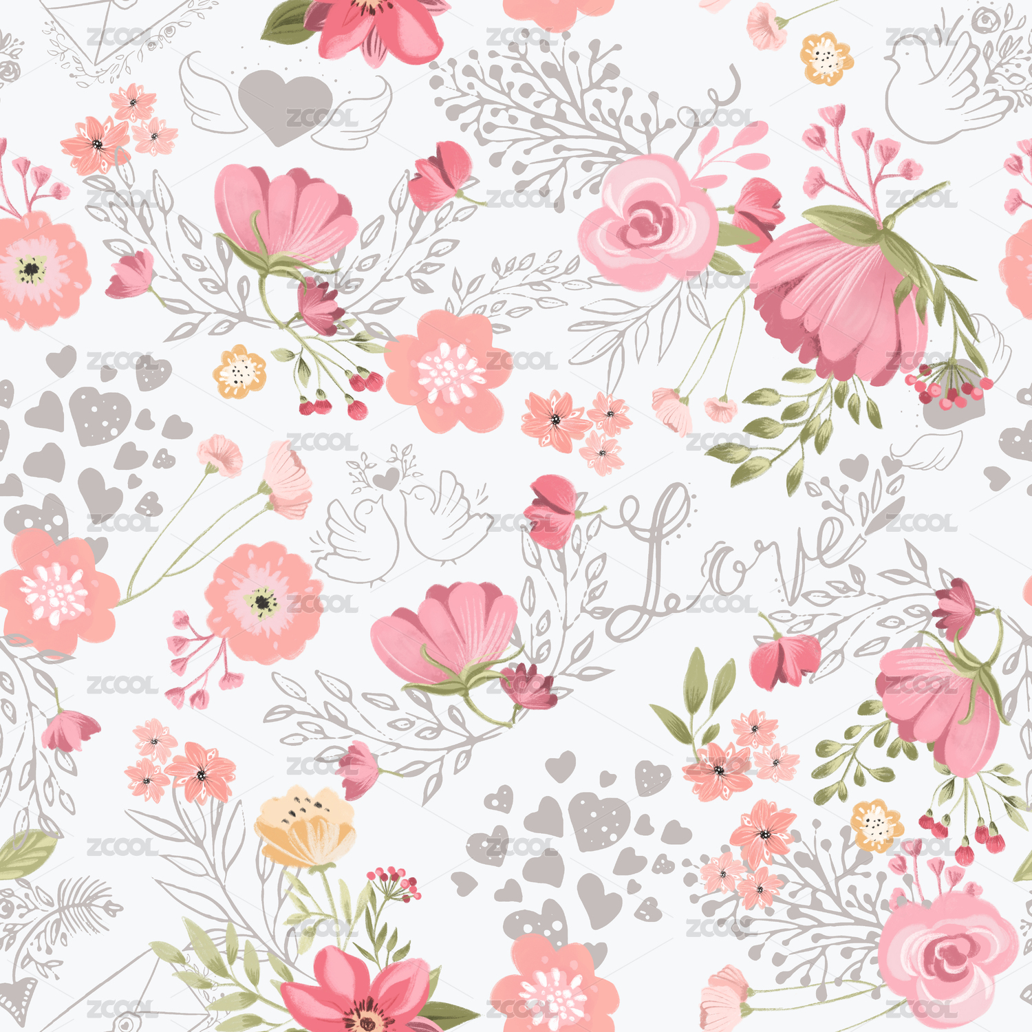 浪漫心形花環(huán)玫瑰花海報(bào)背景紙
