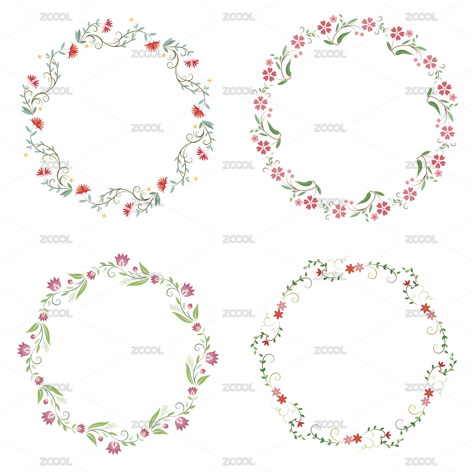 圓形花團心形花邊矢量花紋