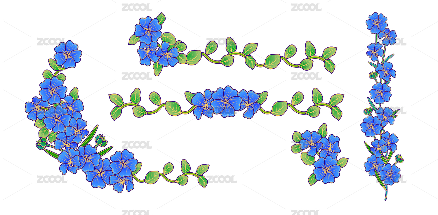 潮流卡通亞麻籽花矢量花朵金邊植物