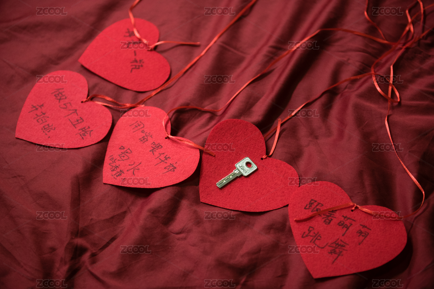 站在紅線環(huán)繞內(nèi)紅心處擁抱的戀人微縮創(chuàng)意