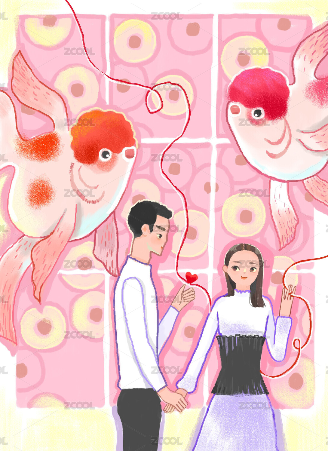 愛情紅線牽手的情侶