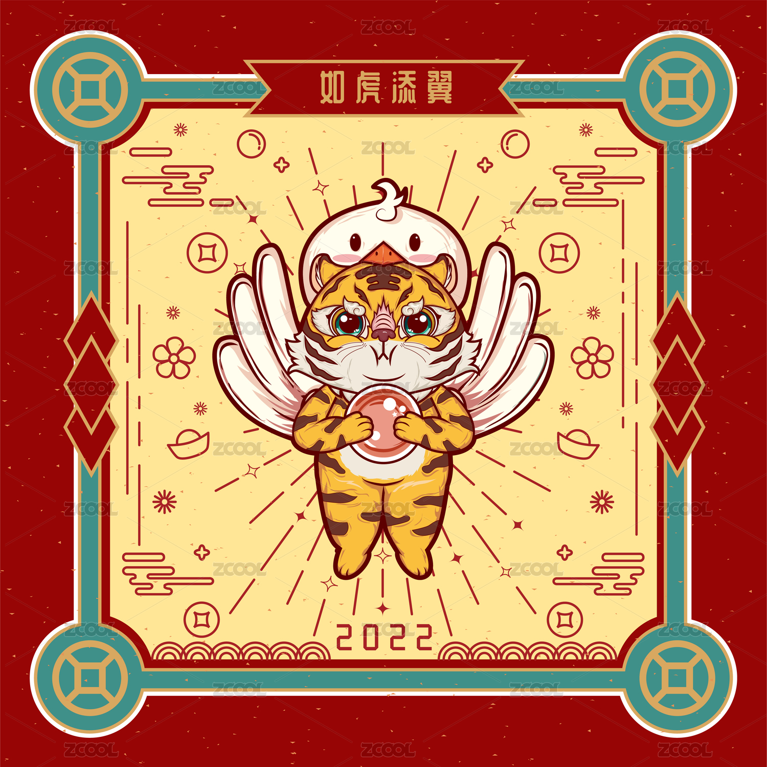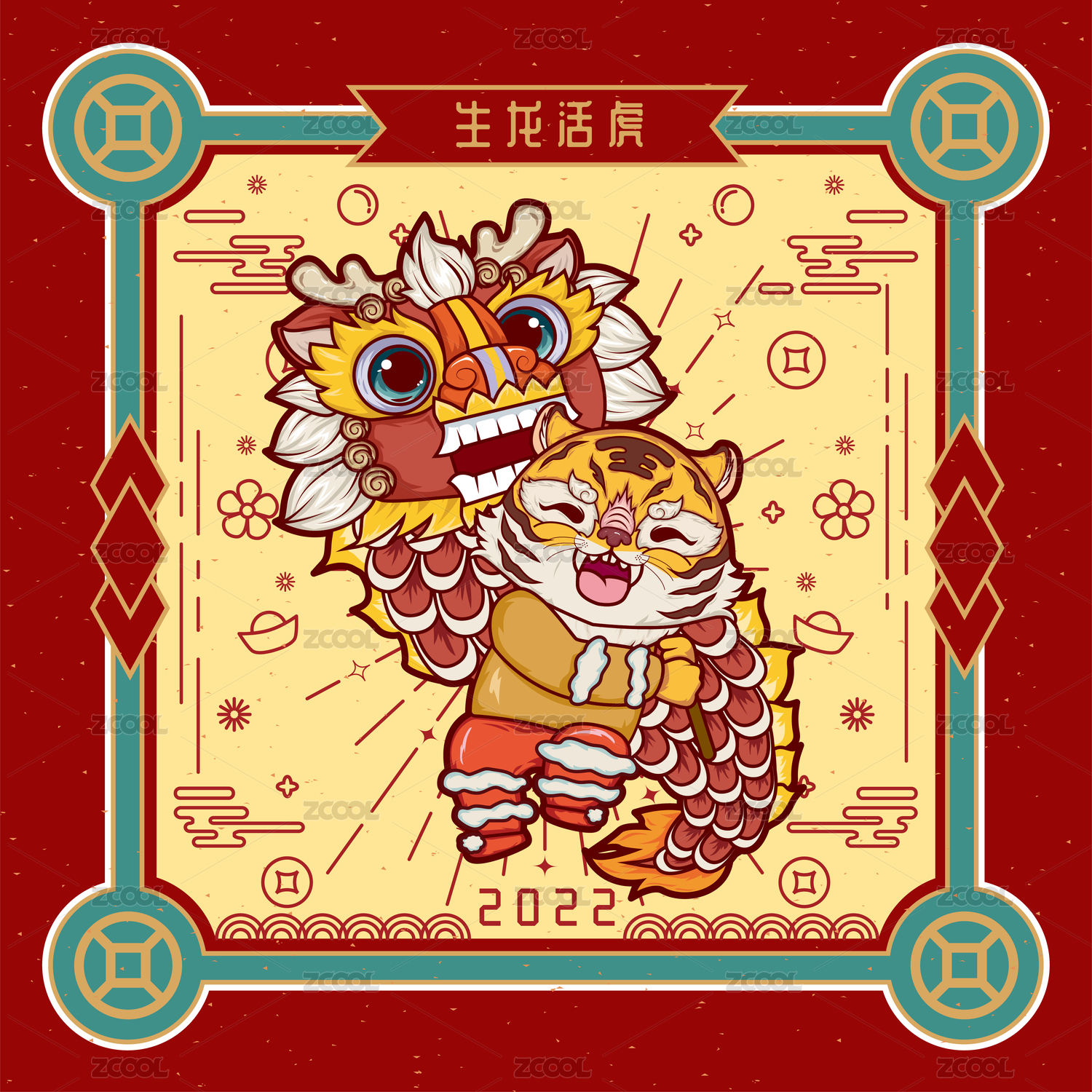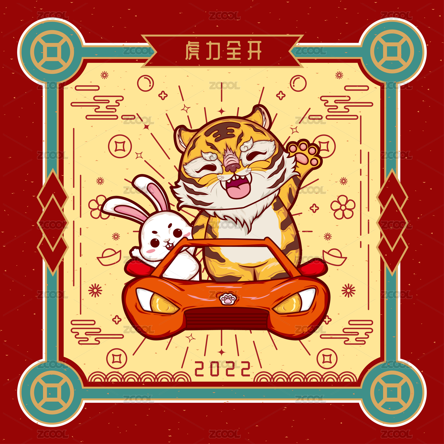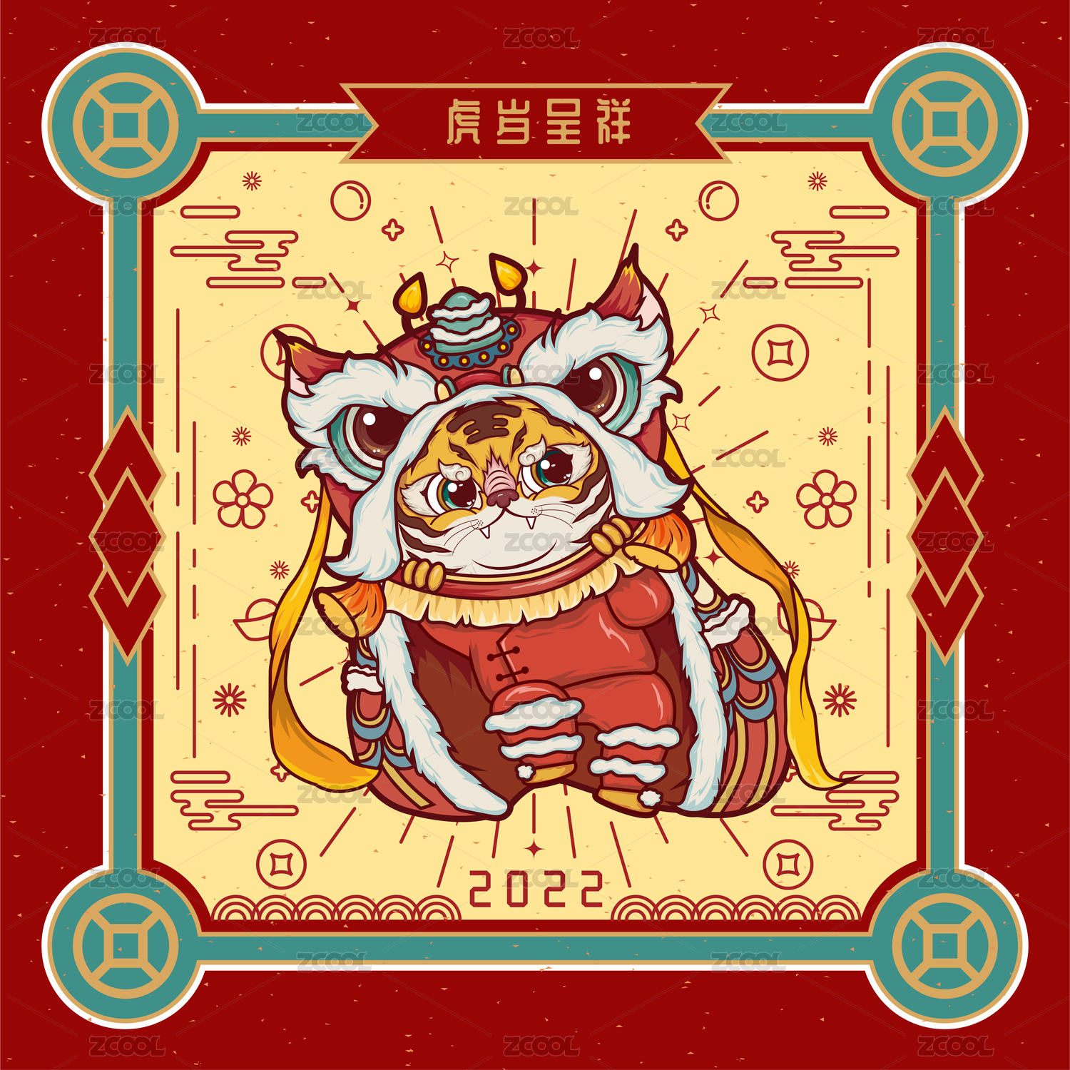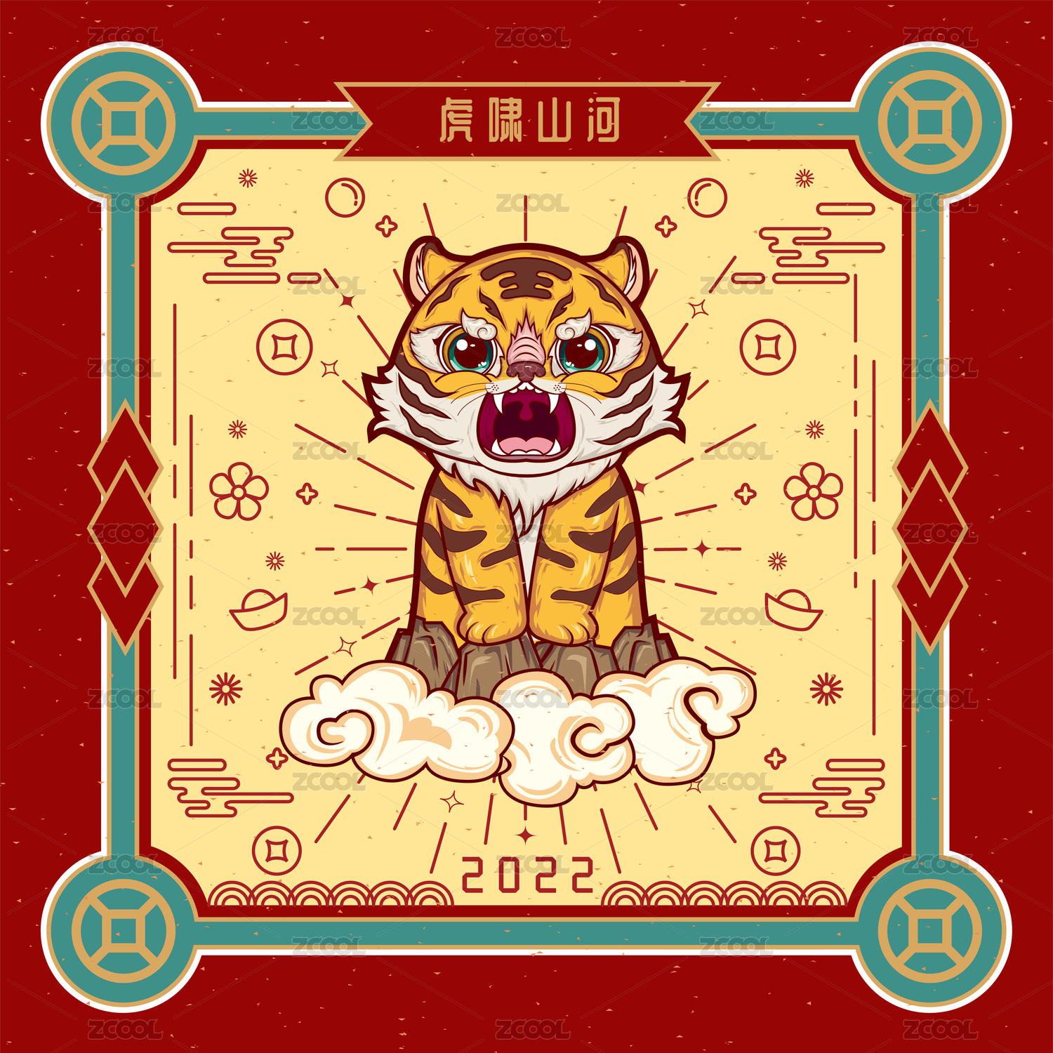 紅線條虎年系列插畫