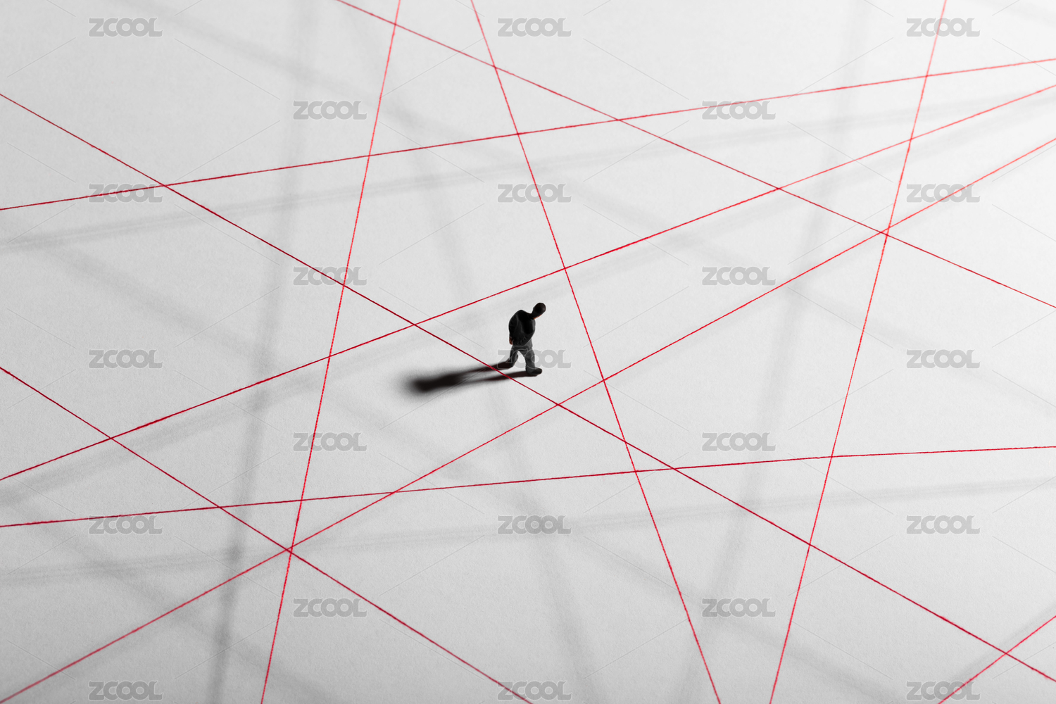 微縮創(chuàng)意紅線幾何光影下思考的焦慮男性