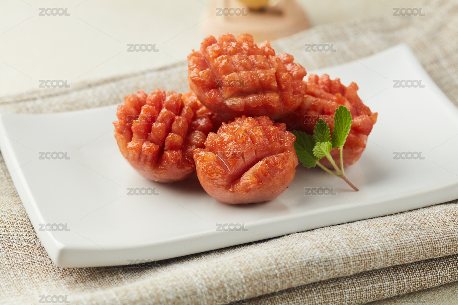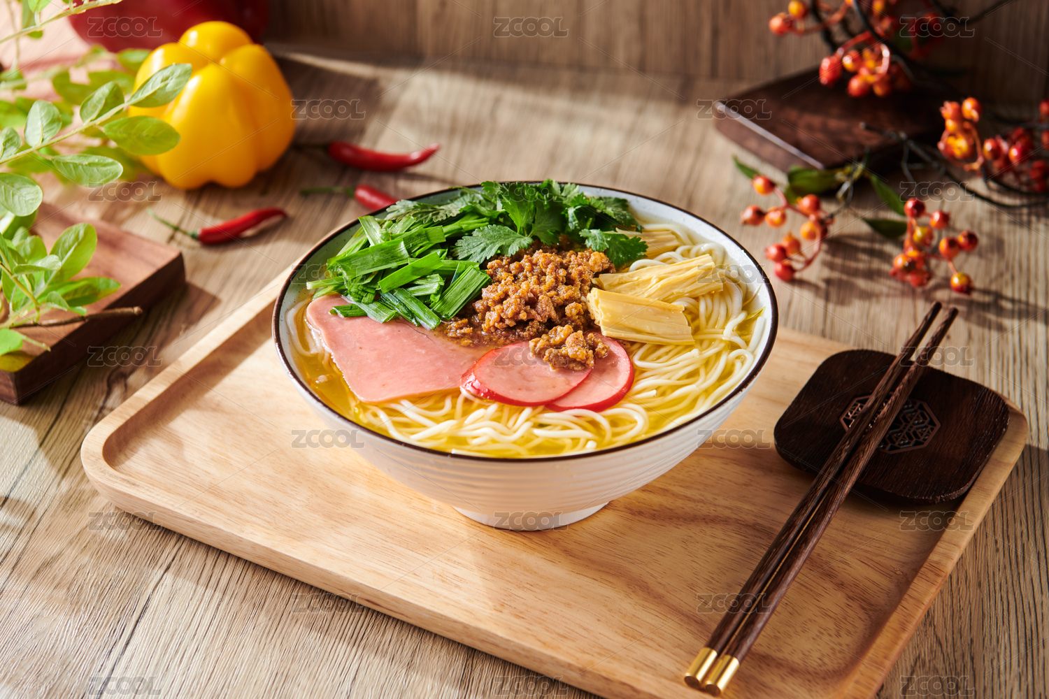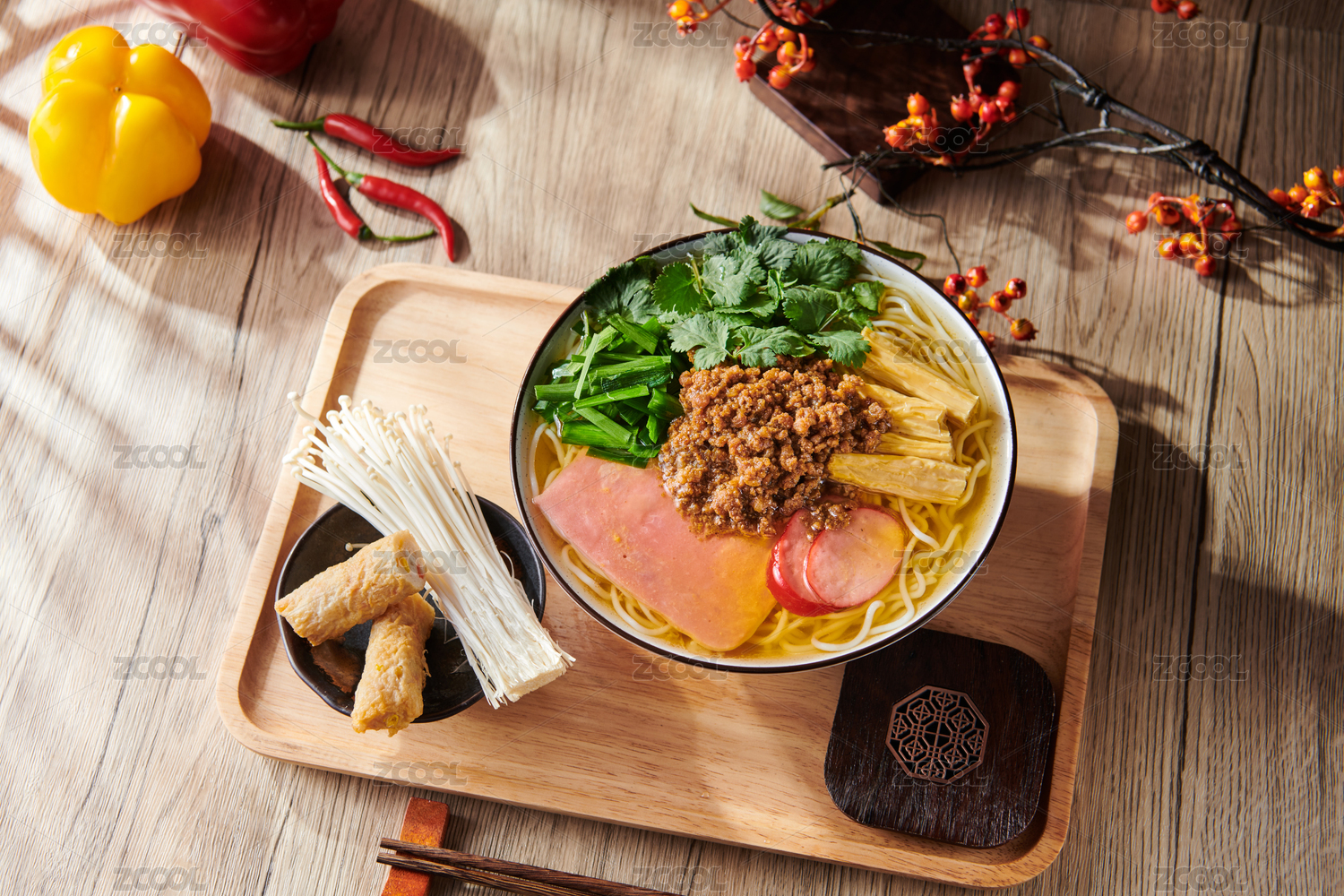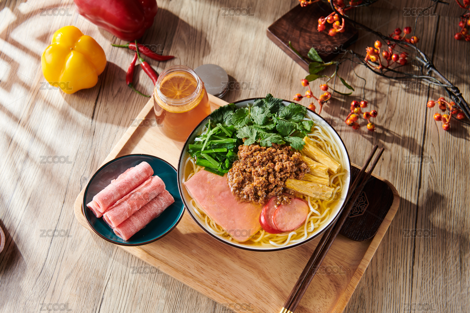 放在白色桌面上的中國廣東風(fēng)味美食——一碟牛雜,一碗清湯和一份辣醬
