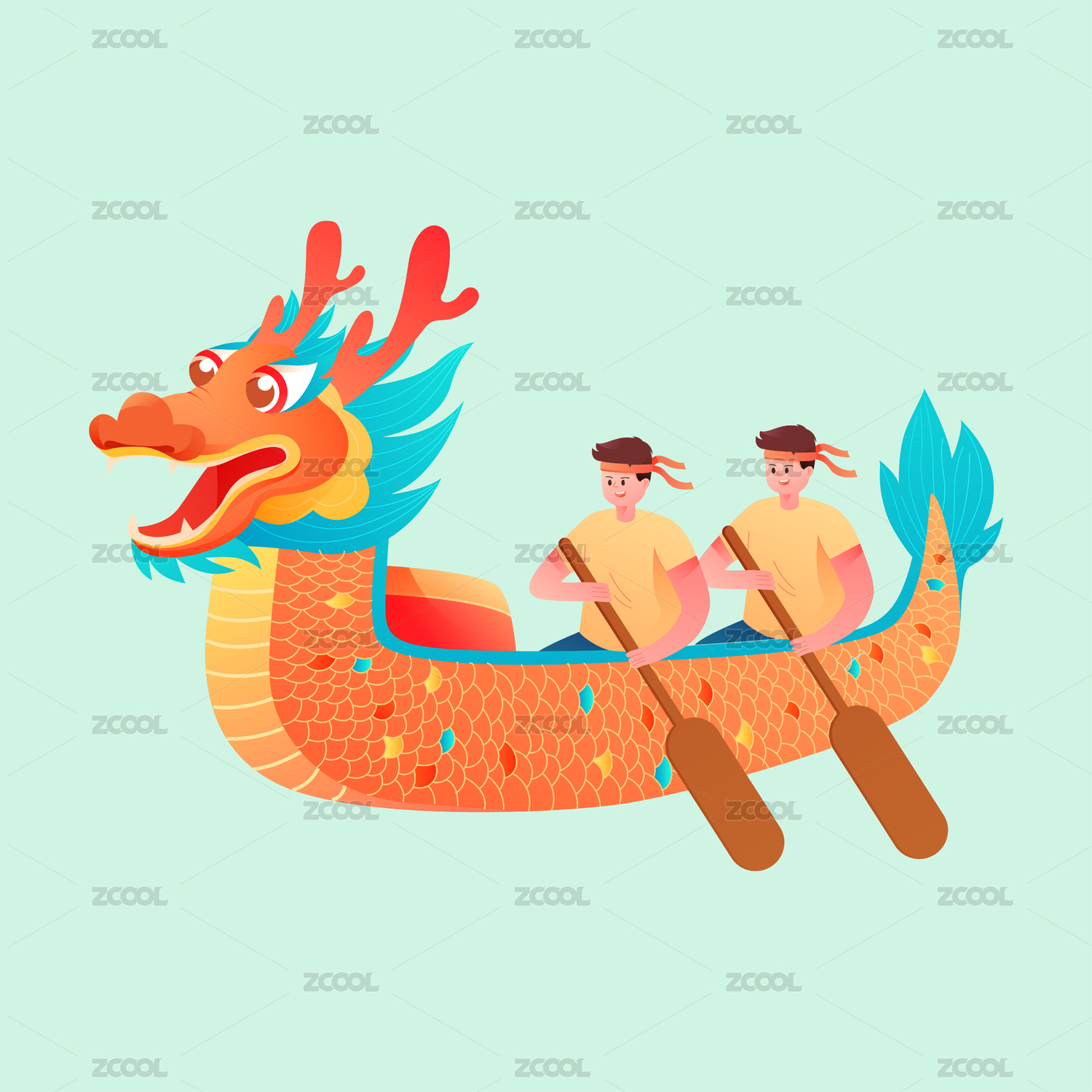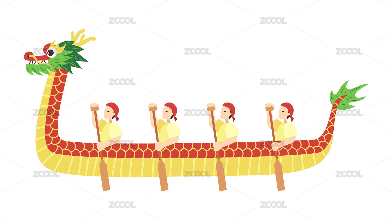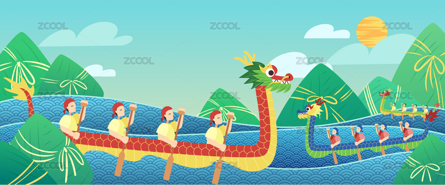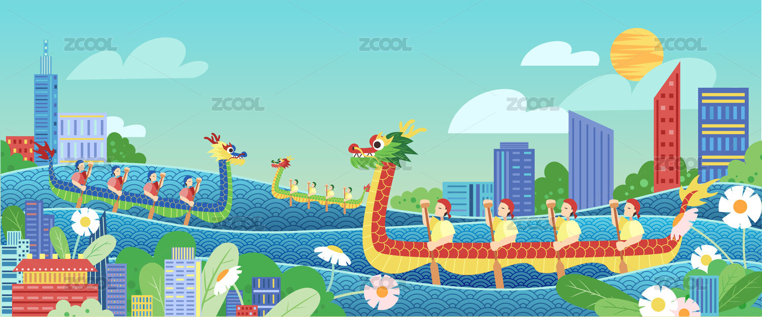 卡通扁平劃龍舟