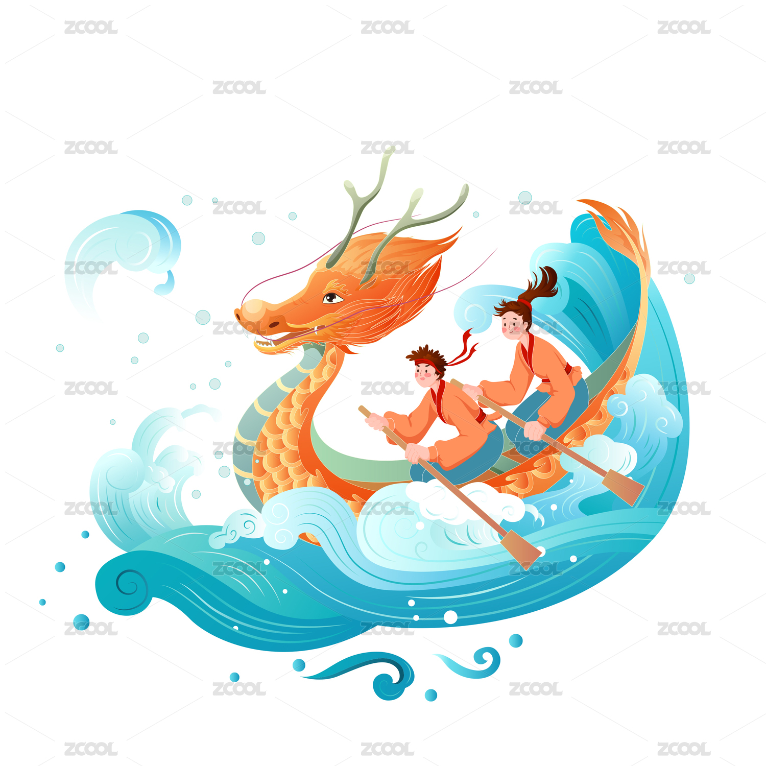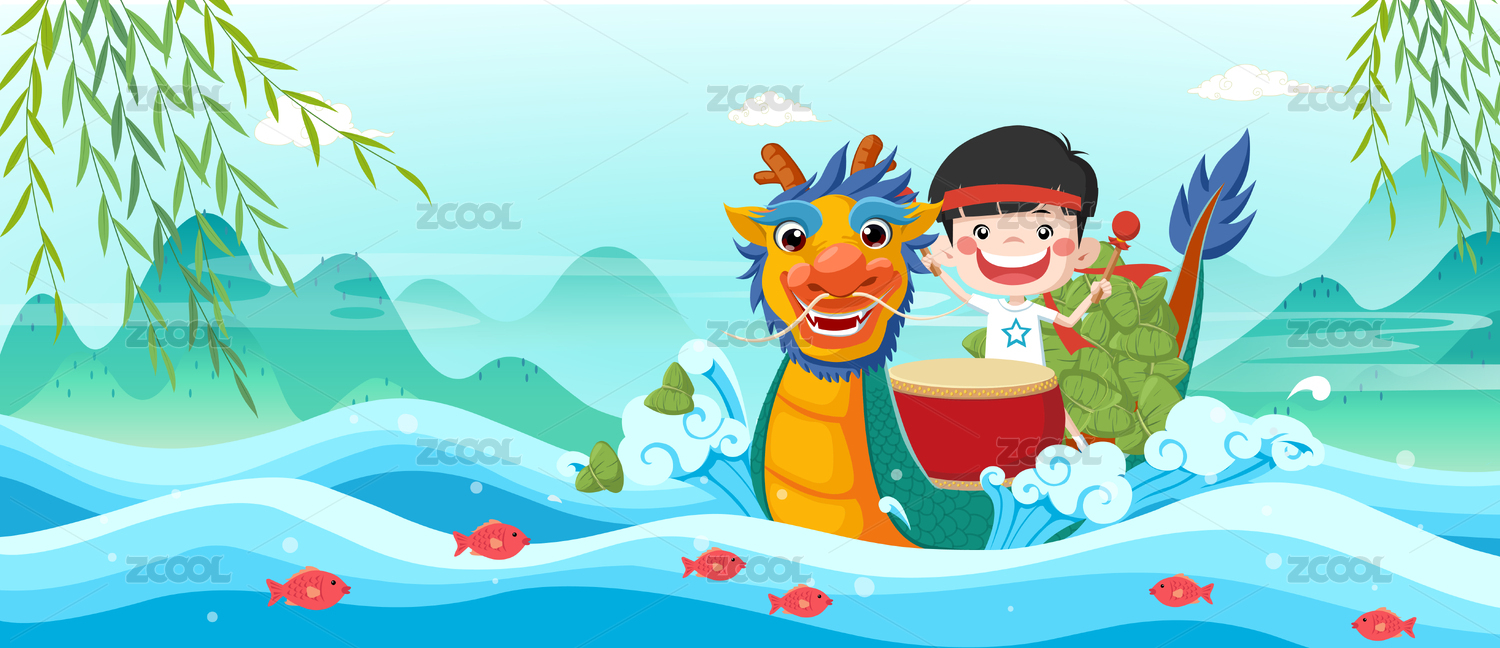 卡通端午節(jié)劃龍舟傳統(tǒng)節(jié)日國潮矢量插畫素材