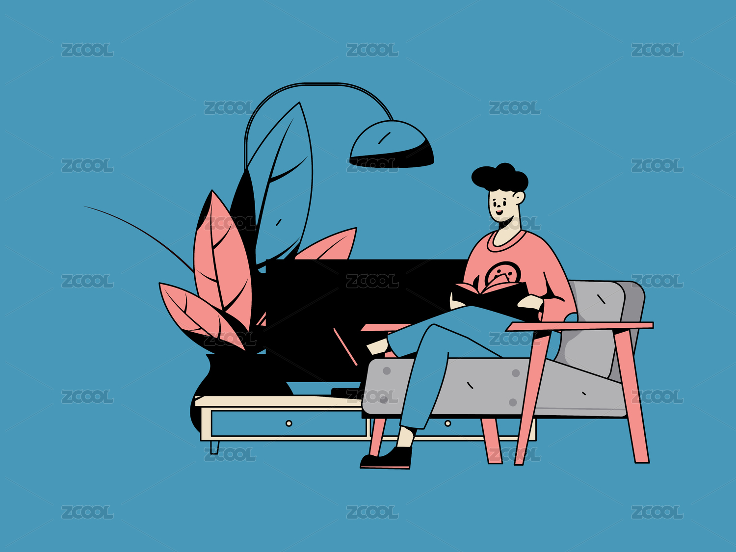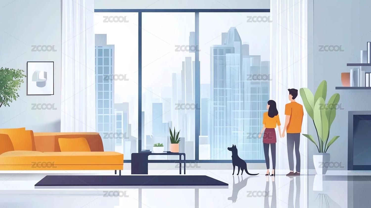 居家室內(nèi)場(chǎng)景扁平插畫(huà)