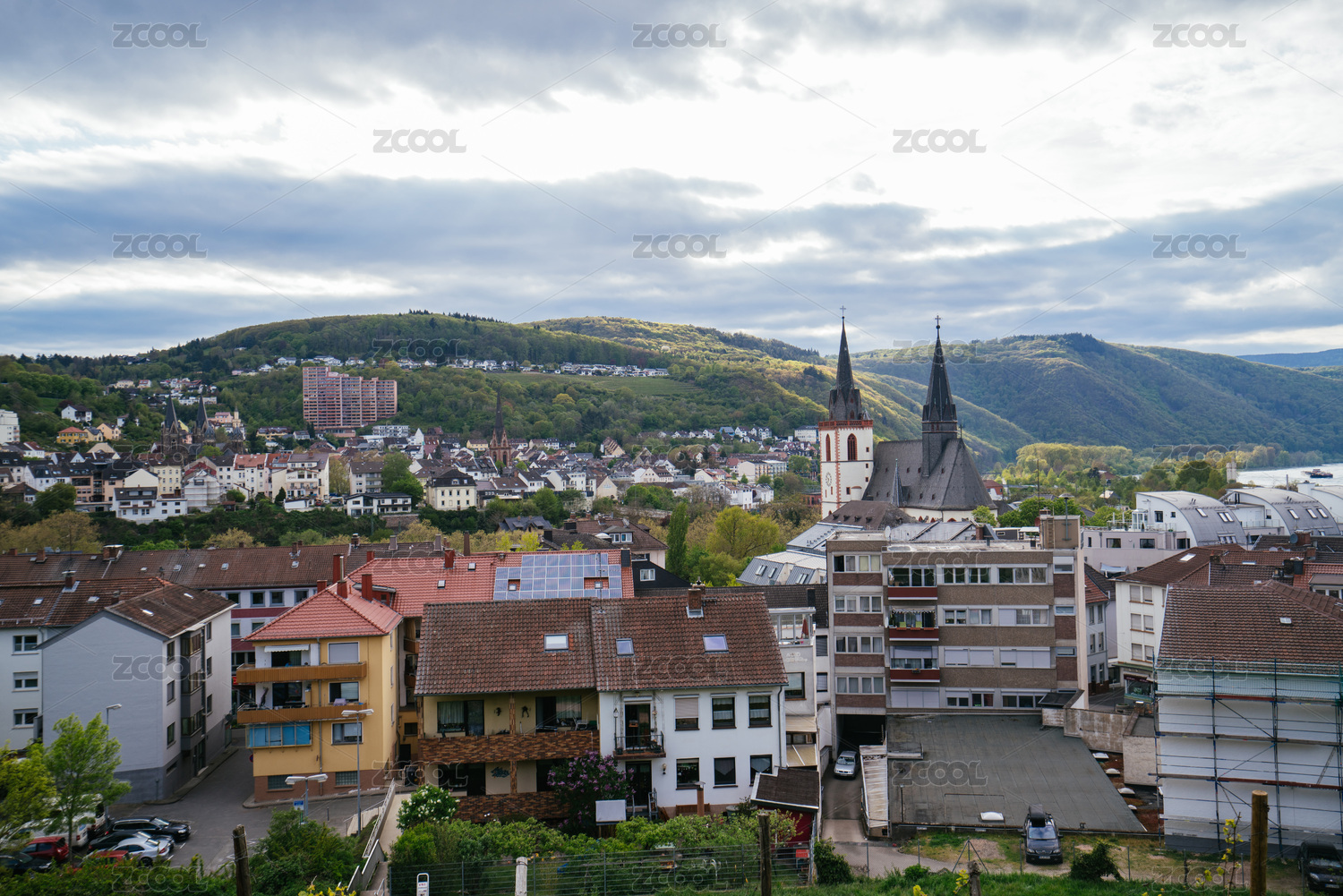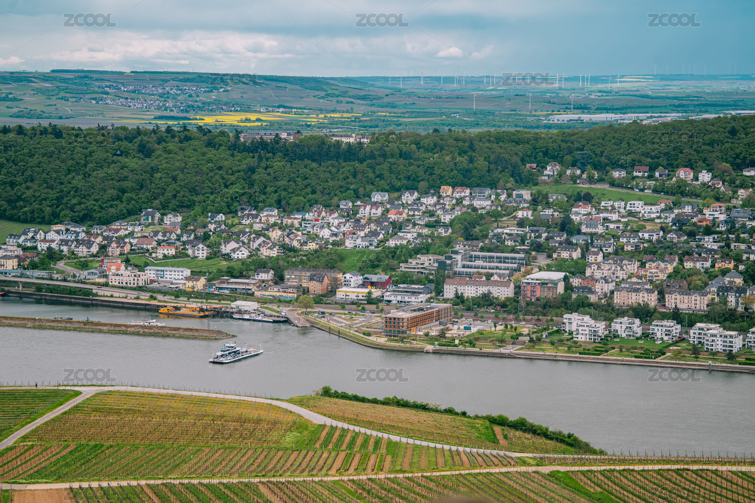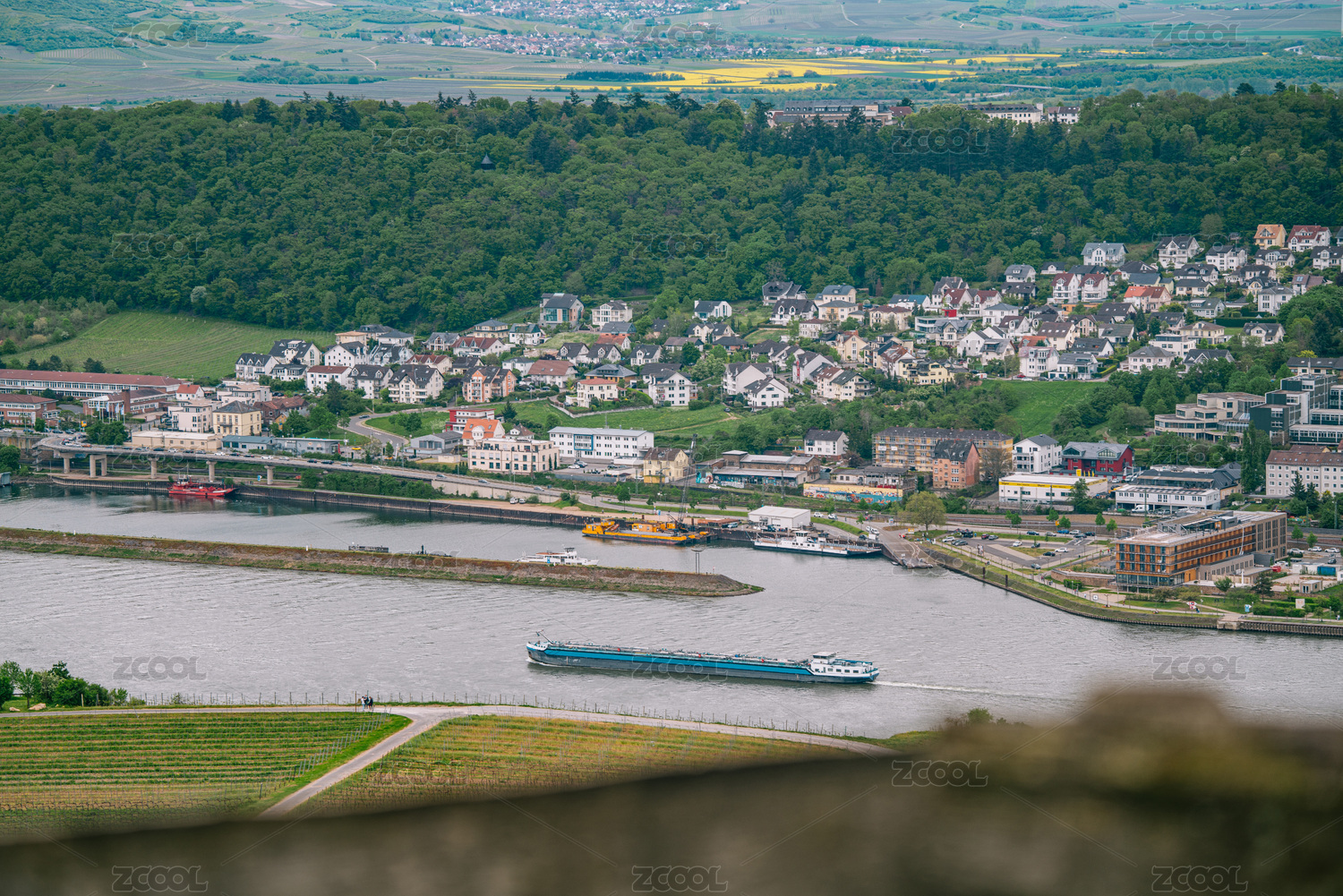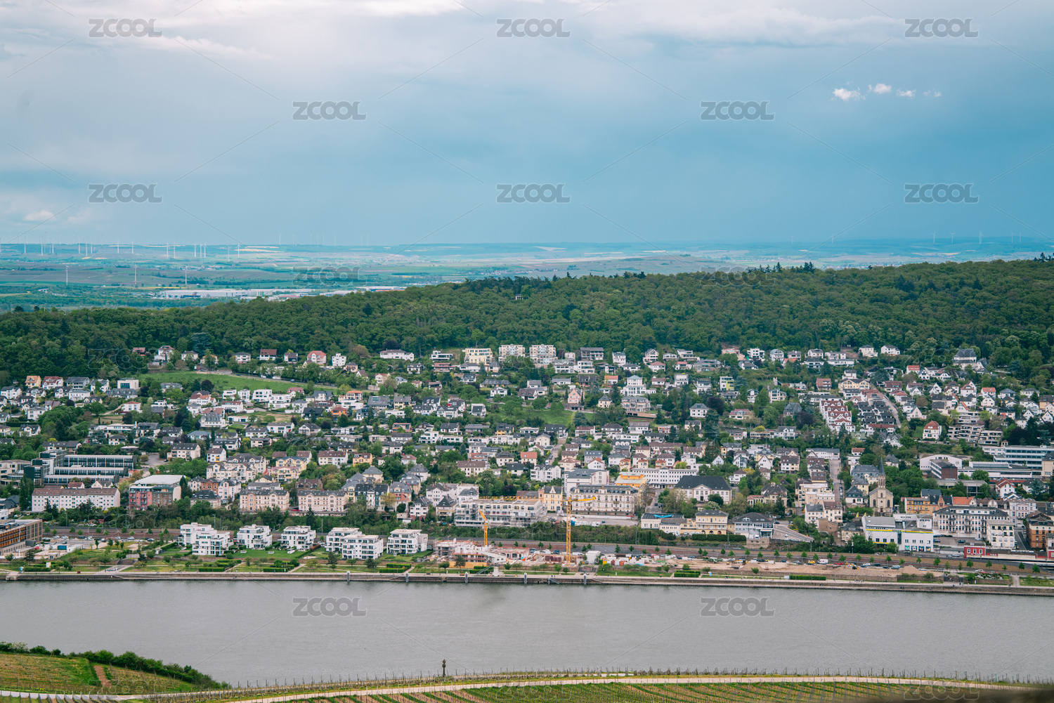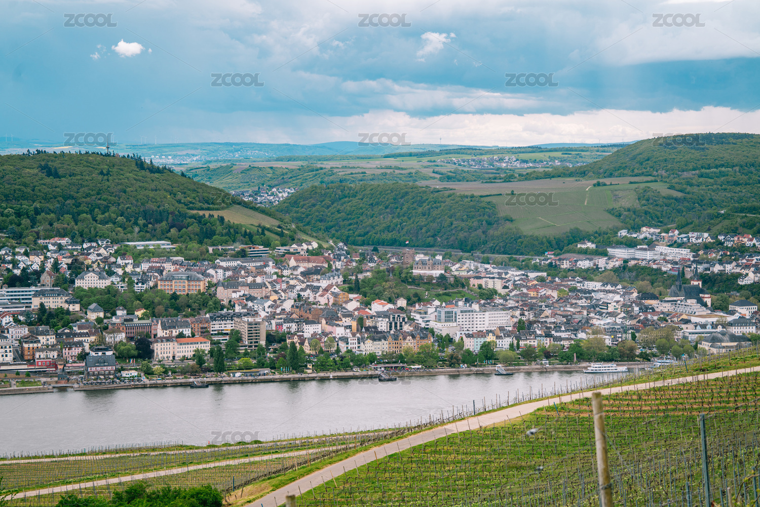 眺望德國萊茵河畔賓根城,萊茵河谷的起點
