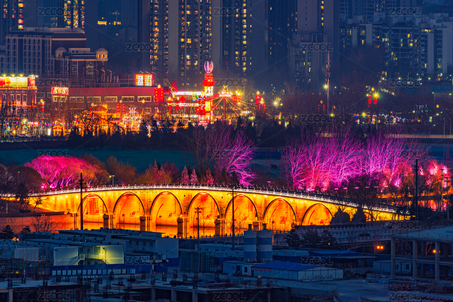 北京通州京杭大運河北起點:攔河閘橋夜景