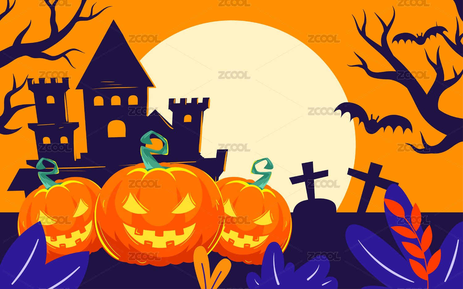 萬圣節(jié)南瓜燈幽靈裝飾場景