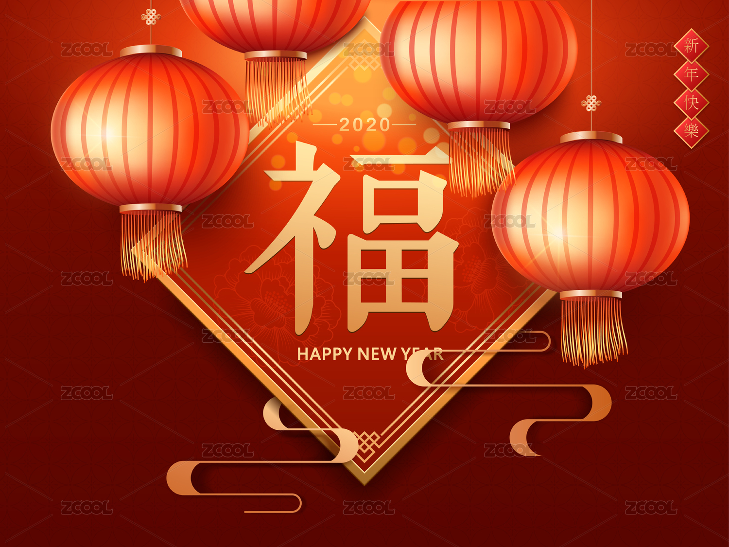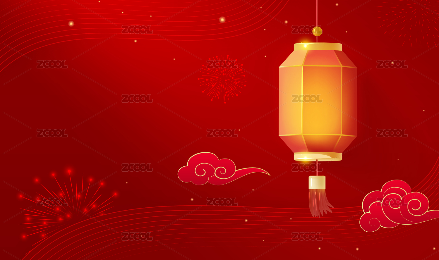 春節(jié)背景設(shè)計(jì)祥云和紅燈籠在抽象線條背景上