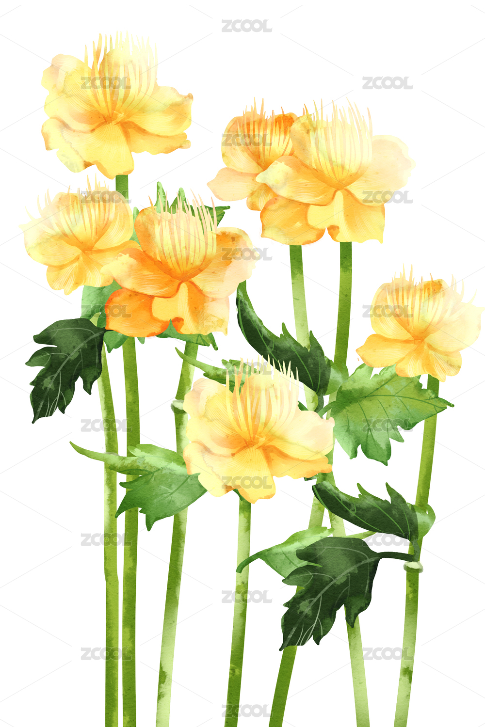 水彩風(fēng)格中草藥植物金蓮花插畫元素