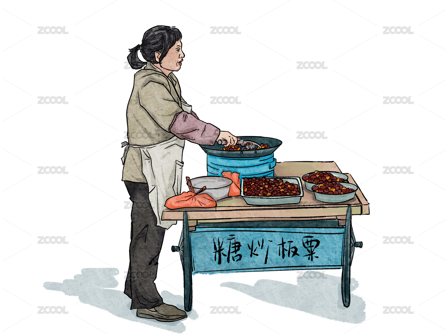 藍(lán)色復(fù)古風(fēng)板栗小攤冬天小商販元素