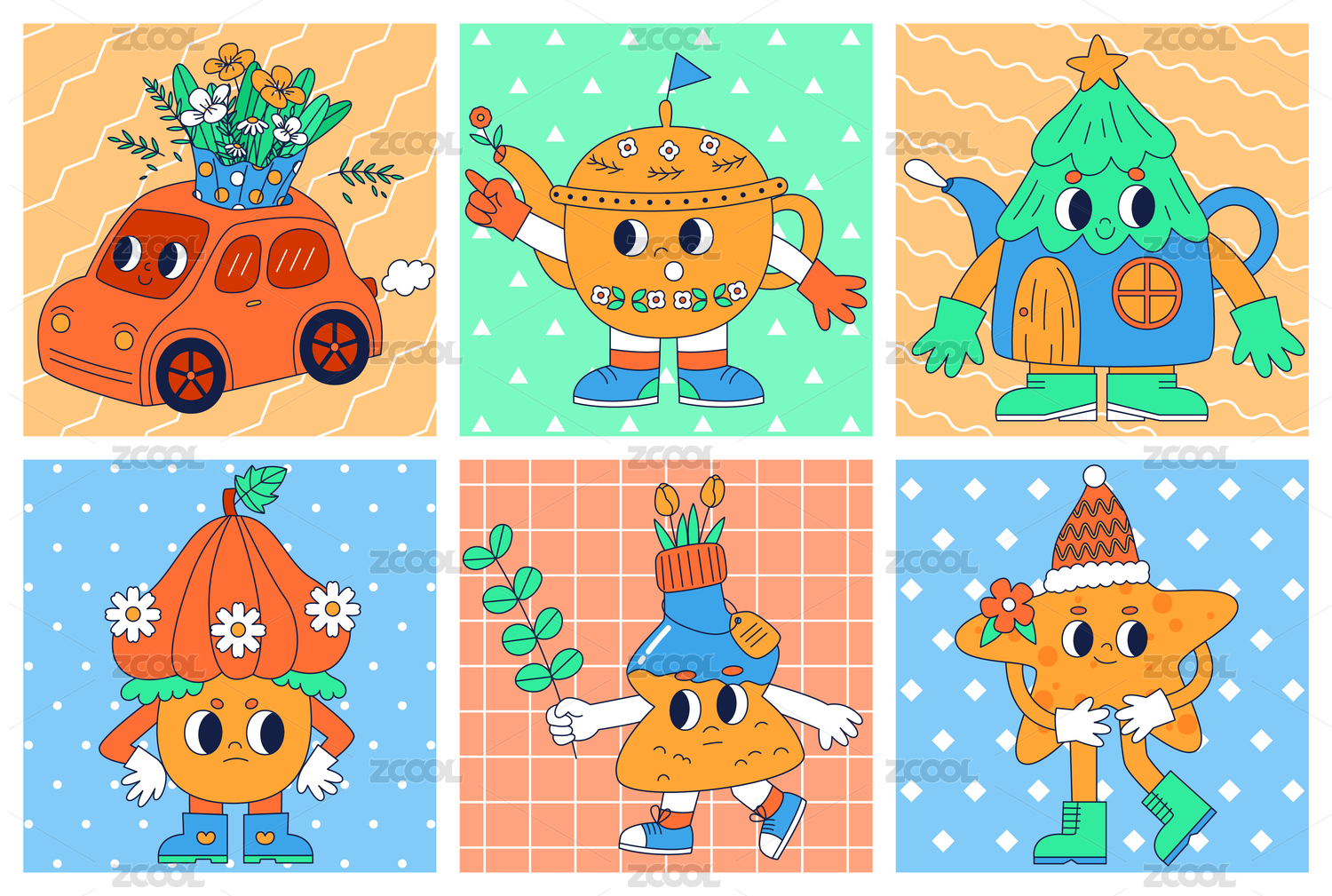 卡通復(fù)古可愛涂鴉貼紙?jiān)厥噶坎瀹?/div>