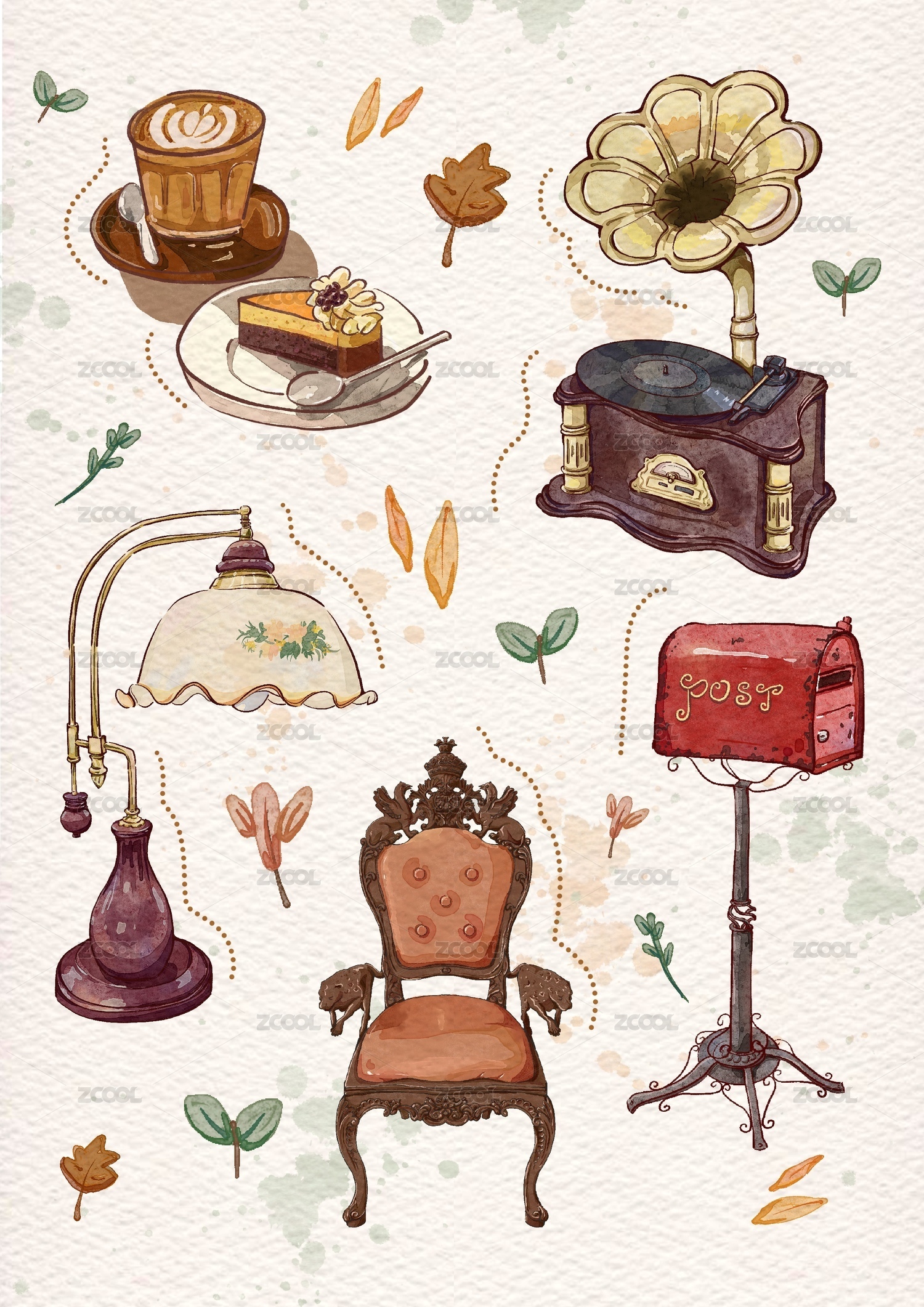 卡通手繪復(fù)古學(xué)習(xí)簡(jiǎn)筆畫元素