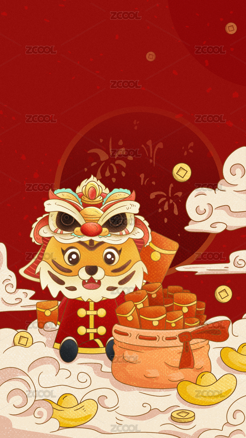 2022年虎年春節(jié)除夕插畫