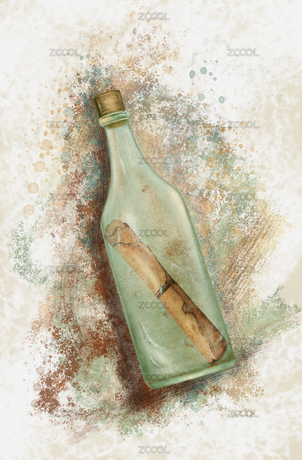 印象藝術(shù)繪畫作品航海用品老舊的漂流瓶