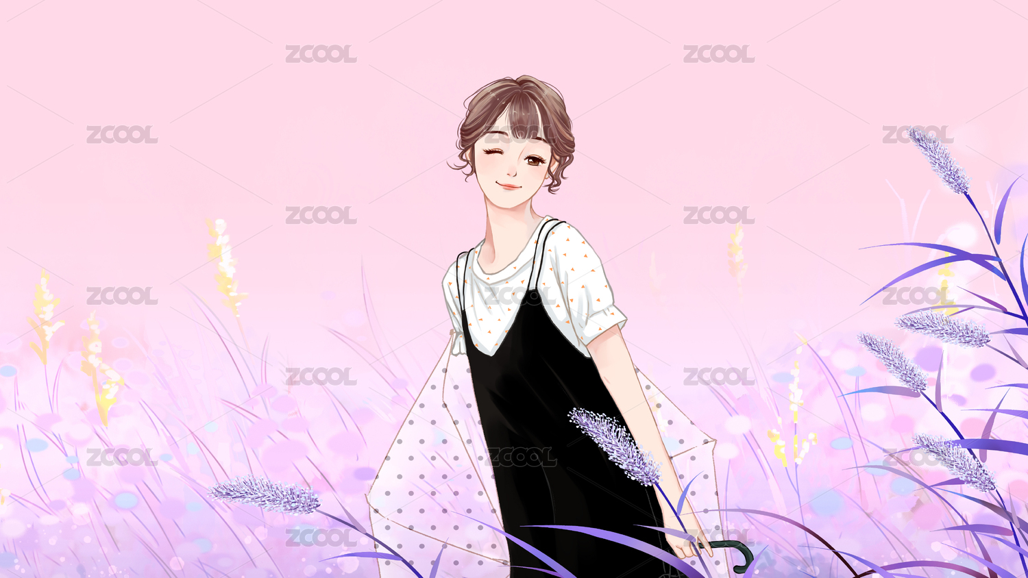 漸變亮點(diǎn)粉紫色手繪風(fēng)云朵插畫