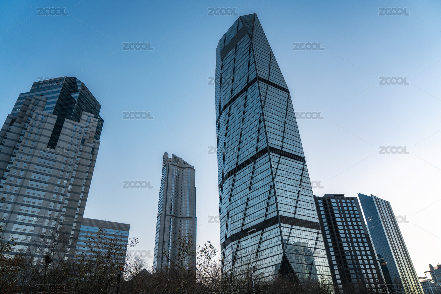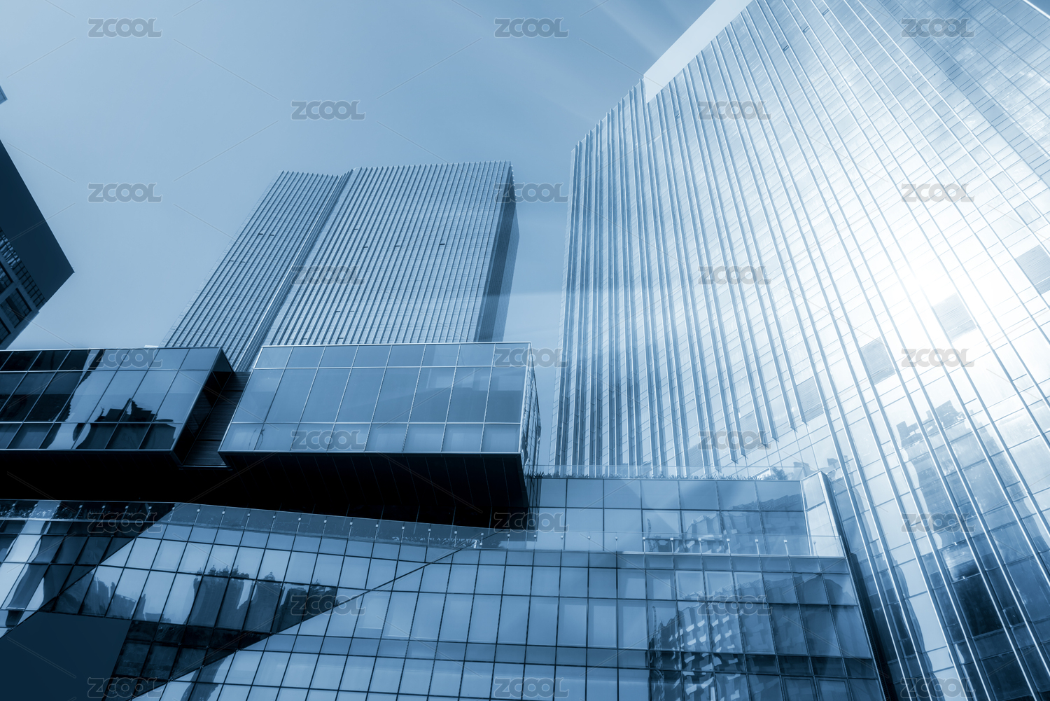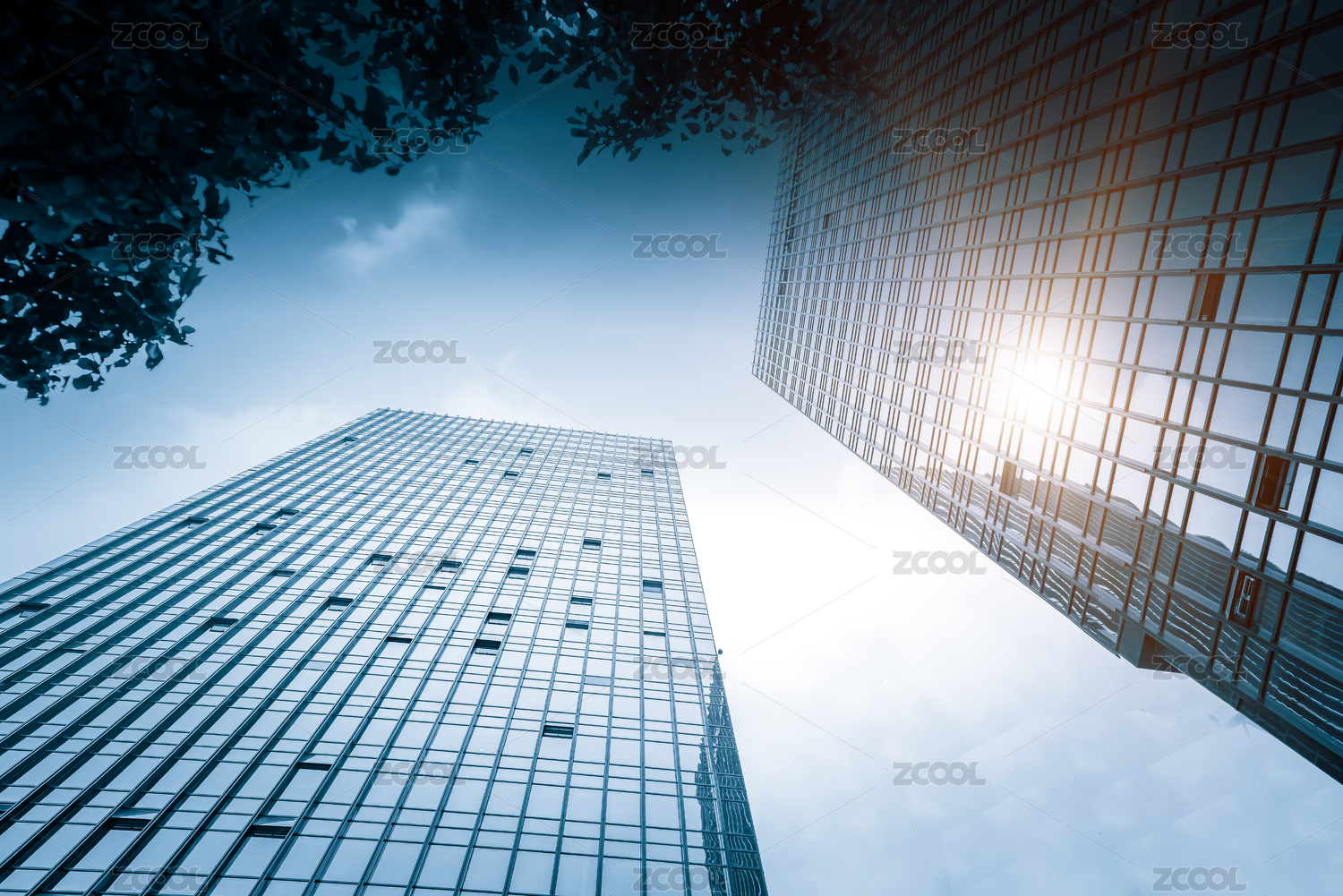 低角度仰視現(xiàn)代城市高樓大廈的玻璃幕墻