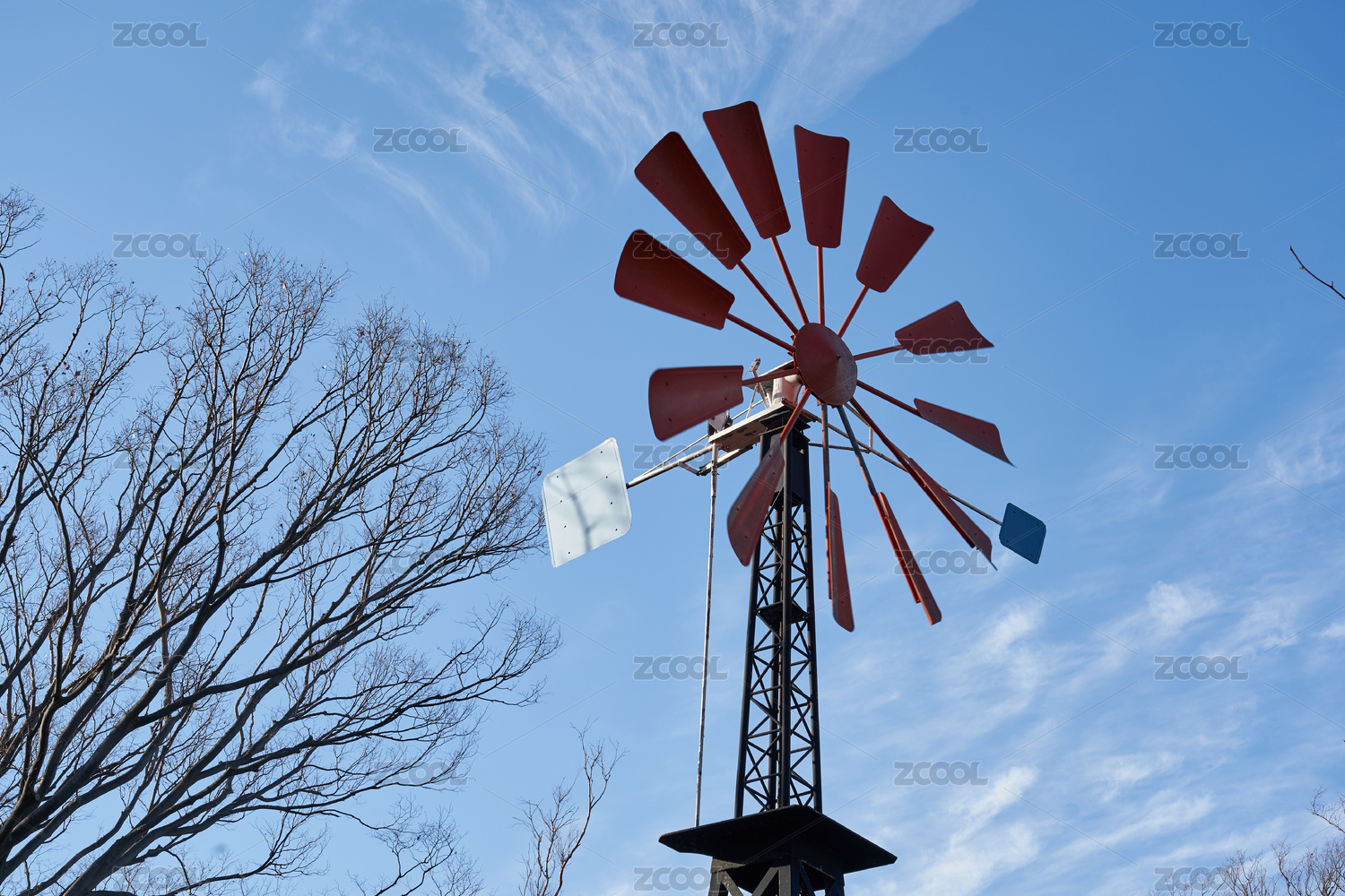仰視天空下的紅色的風(fēng)向標(biāo)