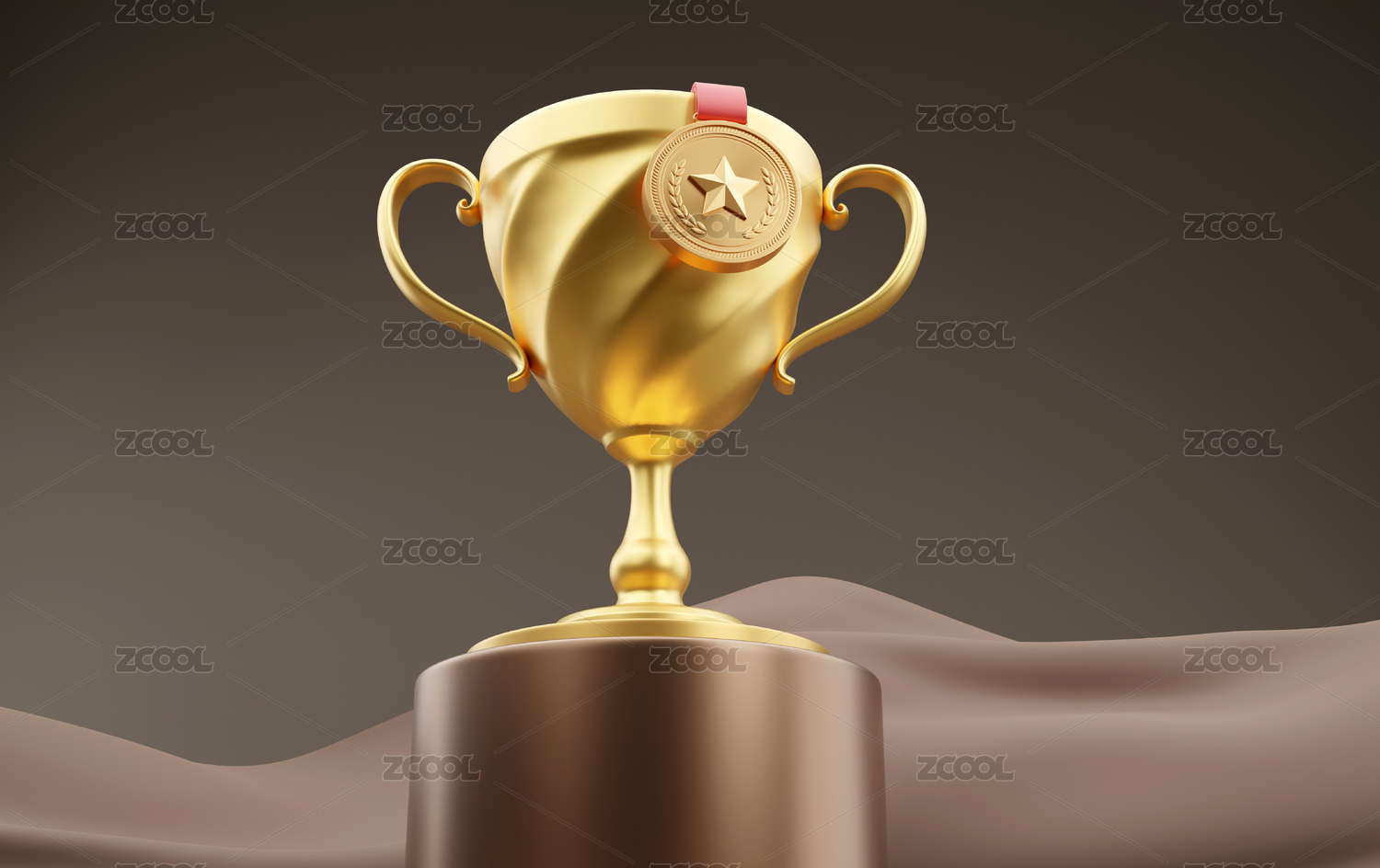高品質(zhì)3D黑金色圓臺(tái)上仰視的金色獎(jiǎng)杯