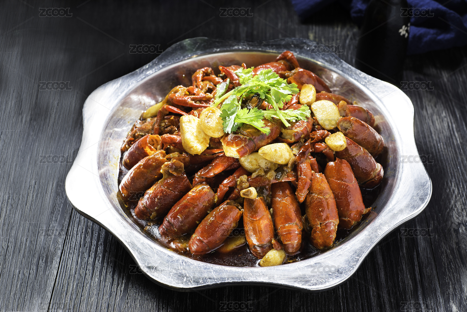 不銹鋼盆中的油燜大蝦