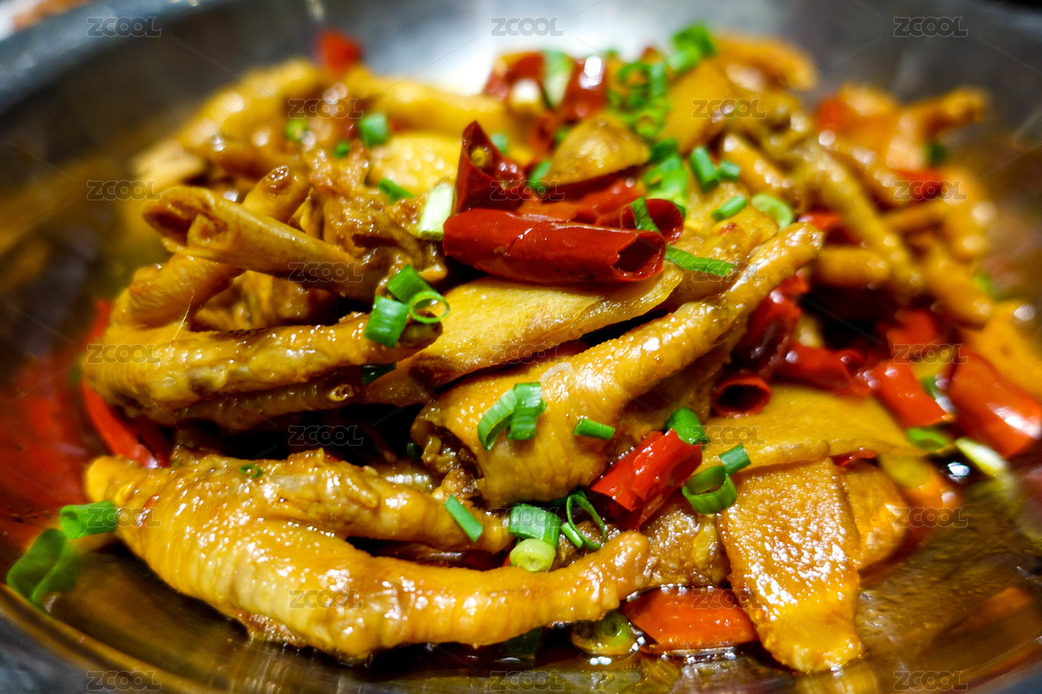 不銹鋼盆里的香辣麻辣雞腳