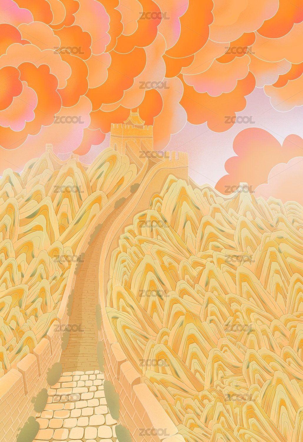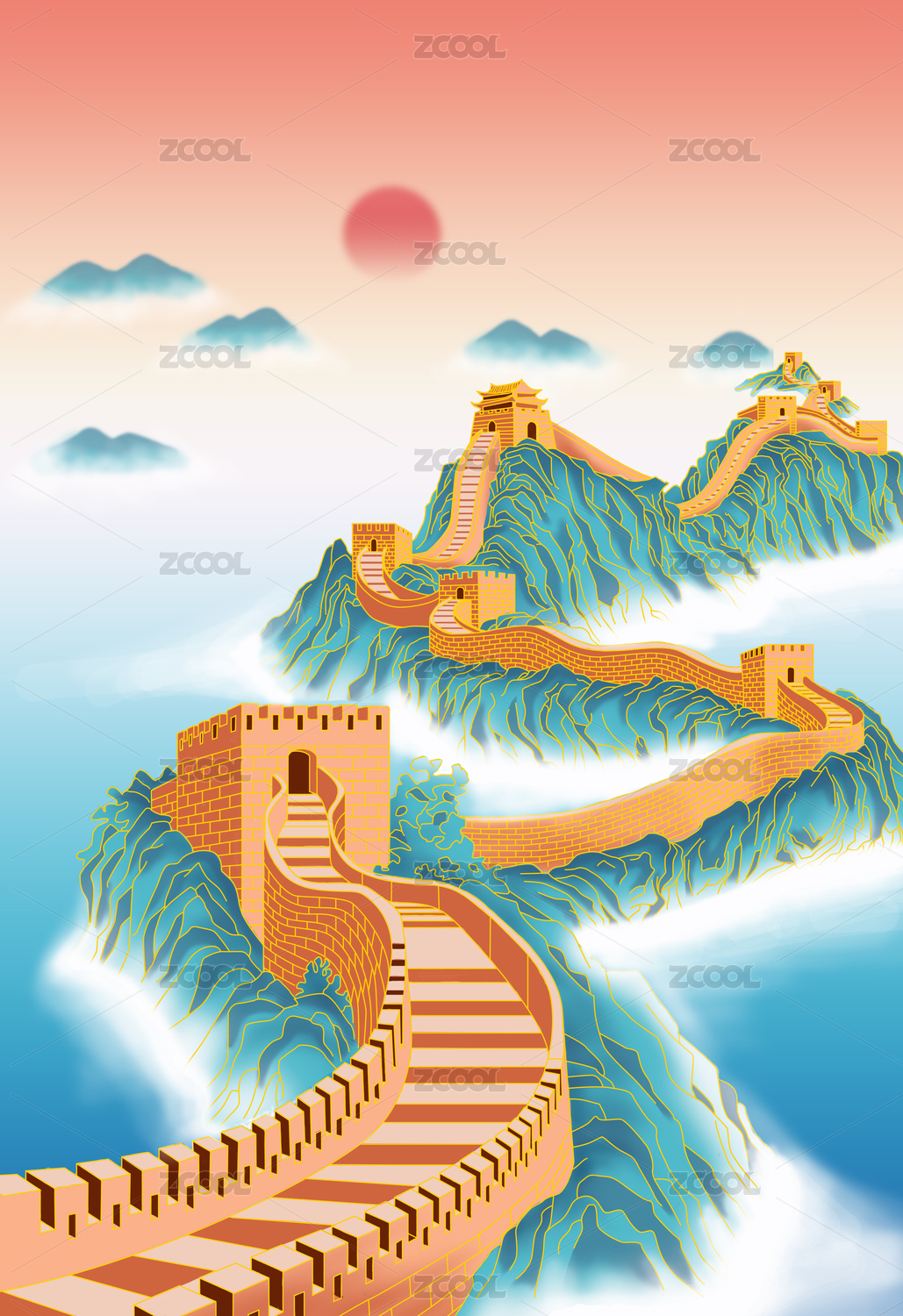 萬里長城手繪插畫
